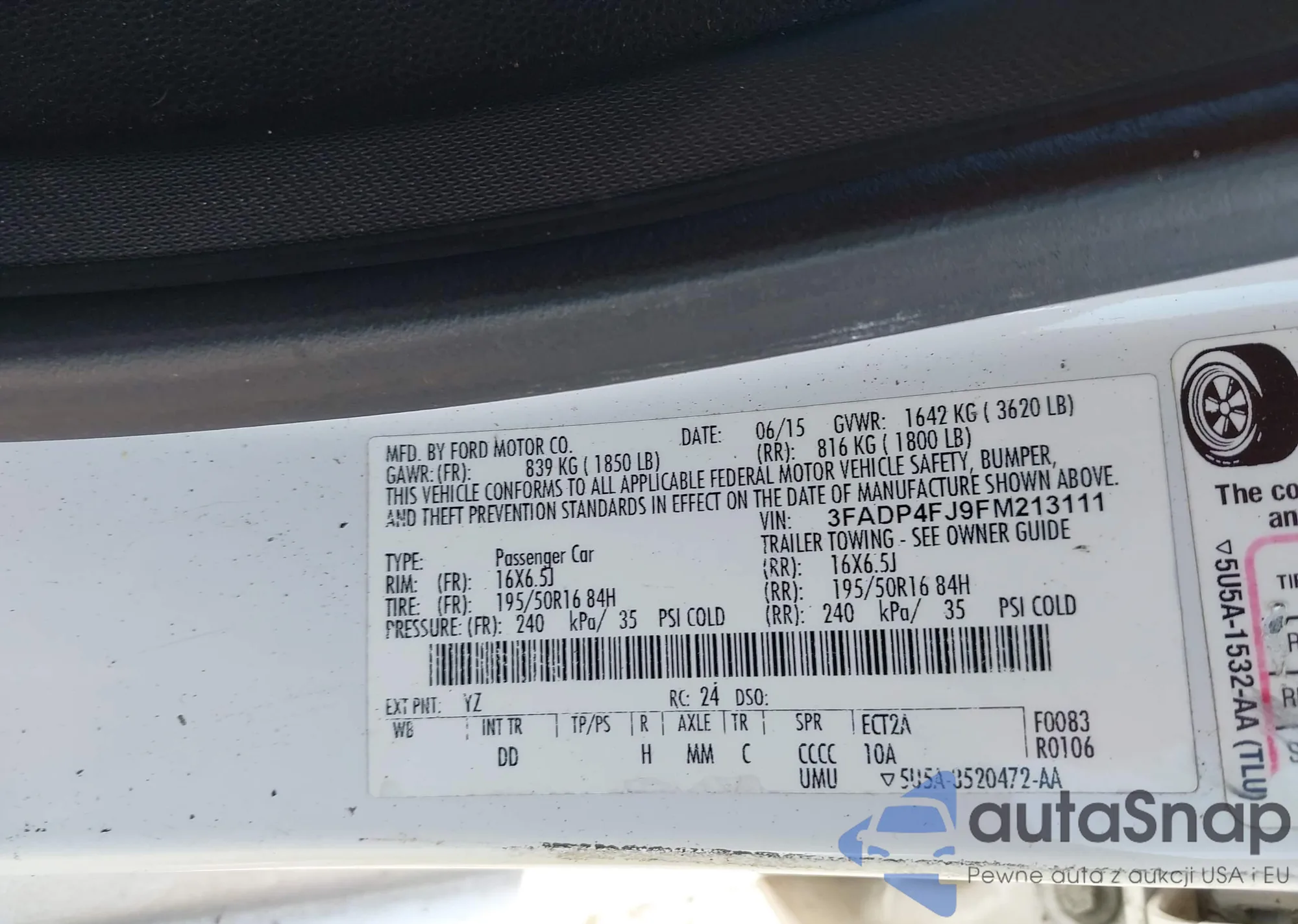 VIN: 3FADP4FJ9FM213111