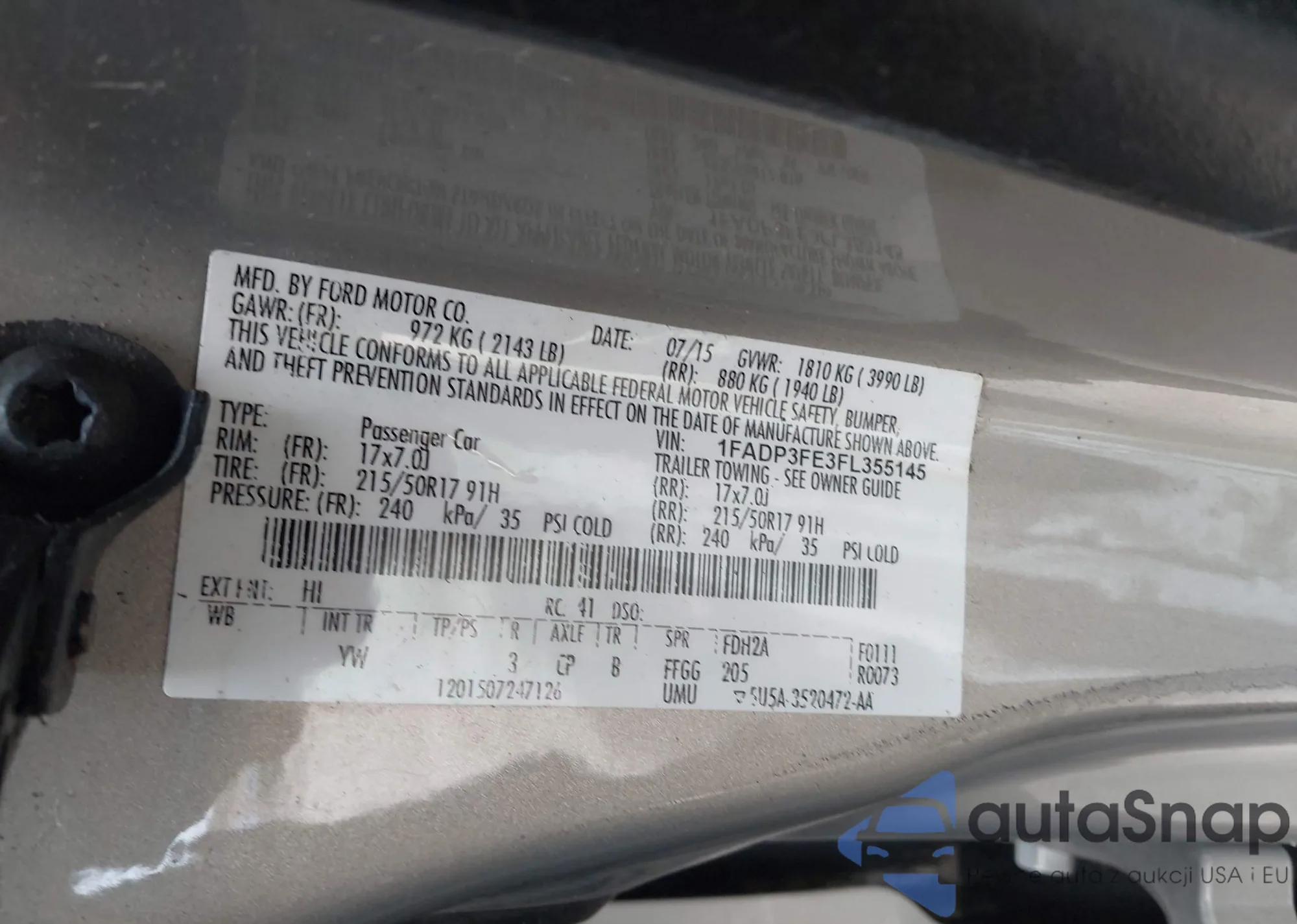 VIN: 1FADP3FE3FL355145