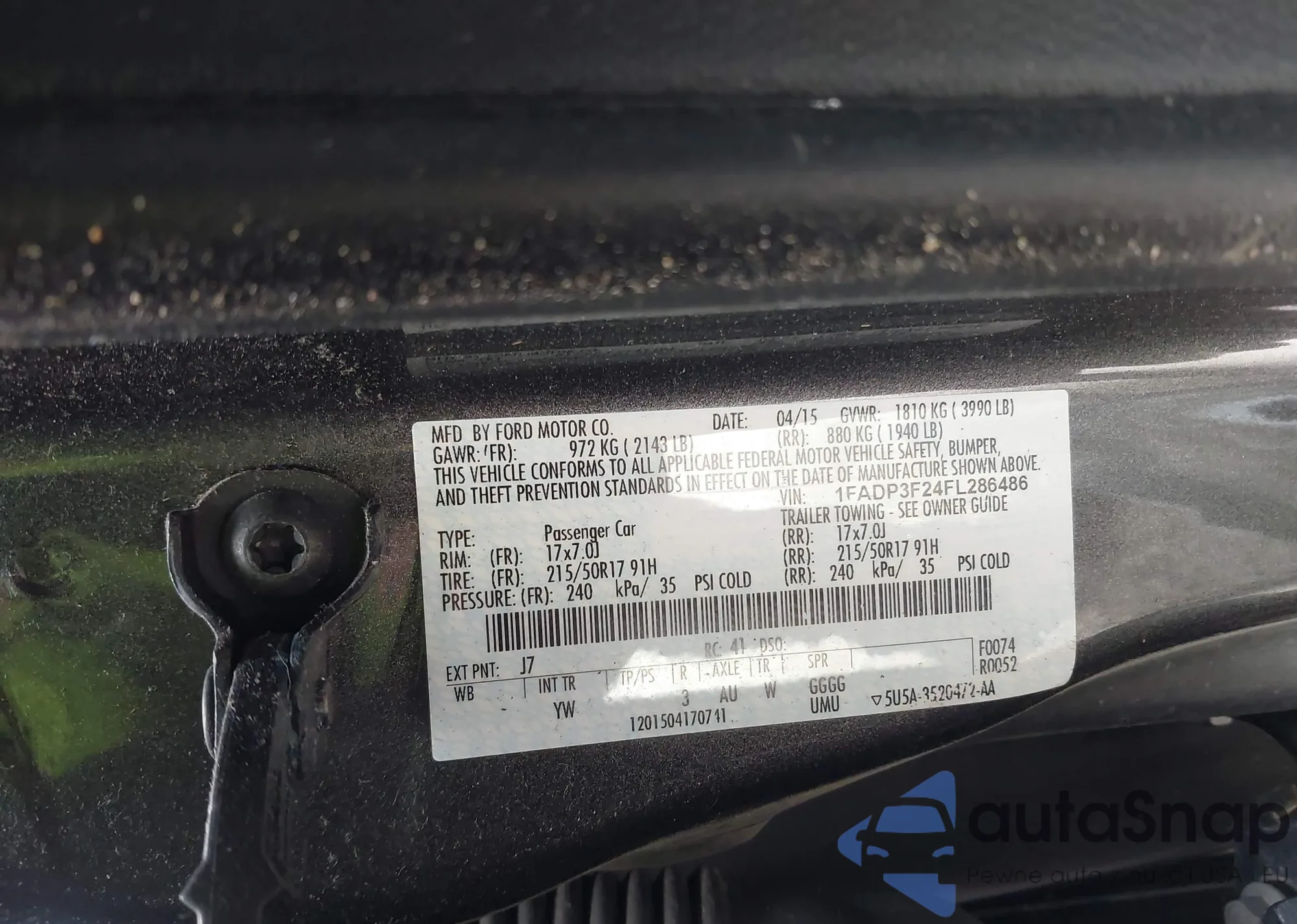 VIN: 1FADP3F24FL286486