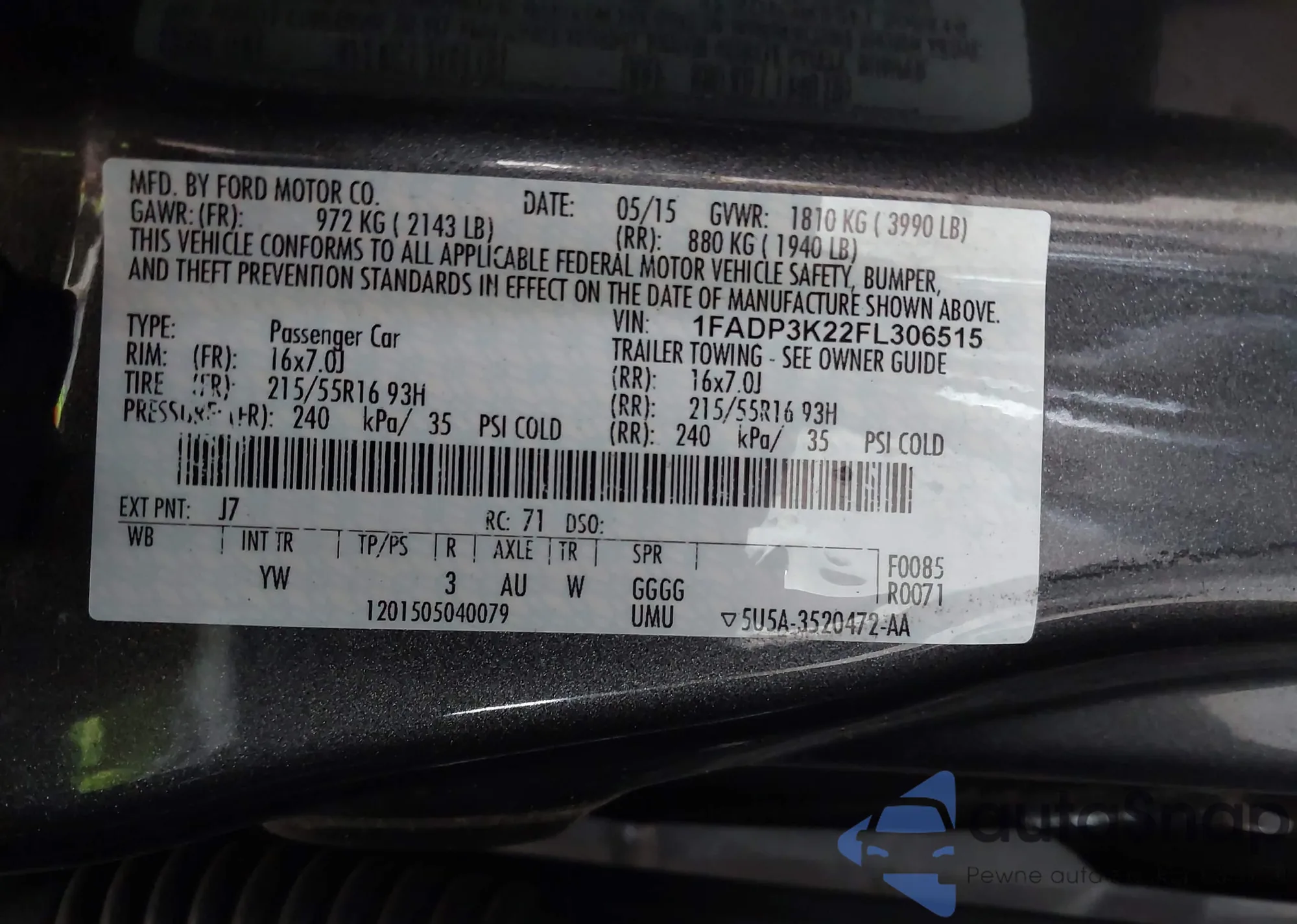 Samochód Ford Focus 2015 (VIN 1FADP3K22FL306515) nie był wcześniej licytowany. Dokumenty są czyste, przebieg odpowiada lub jest niższy niż średnia rynku. Sprzedaje go firma ubezpieczeniowa – polecamy zakup. Dostawa do portu zajmie ok. 6–8 tygodni.