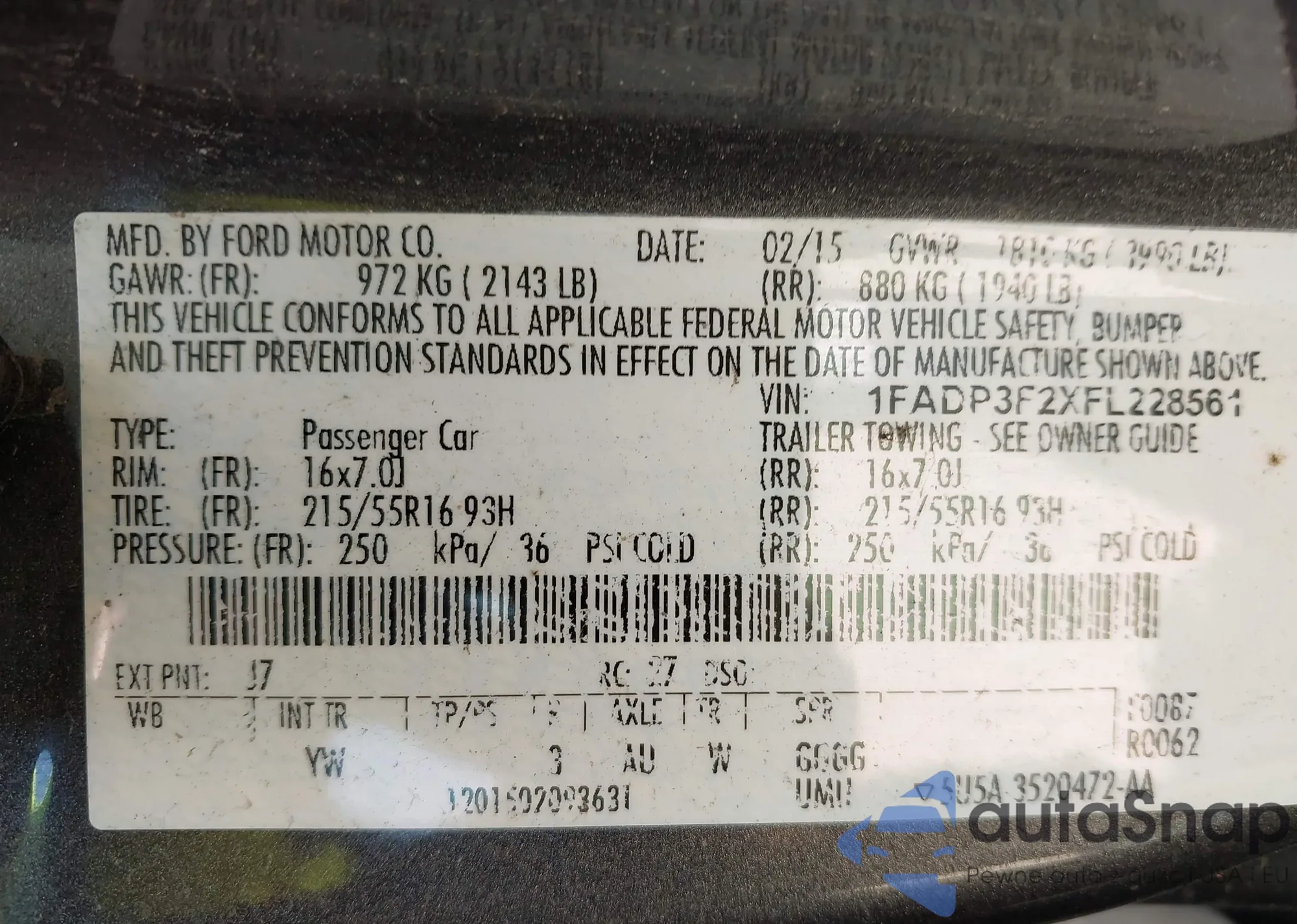 VIN: 1FADP3F2XFL228561