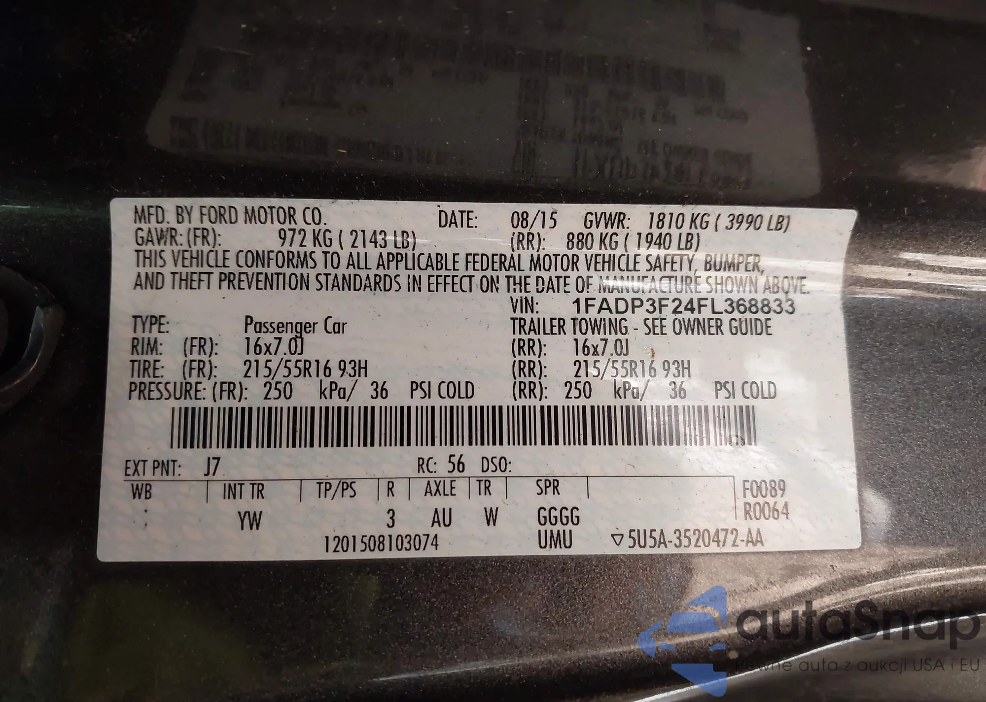 VIN: 1FADP3F24FL368833