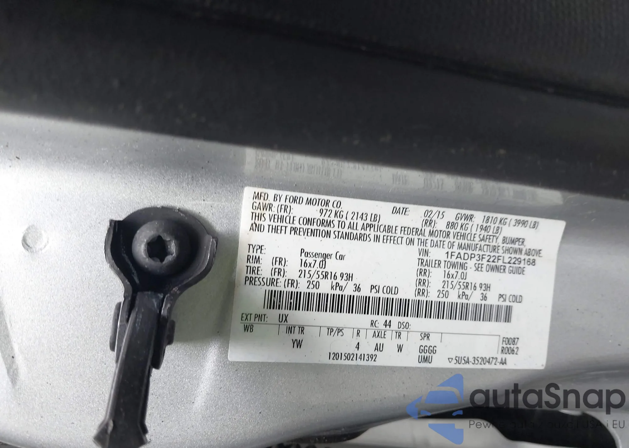VIN: 1FADP3F22FL229168