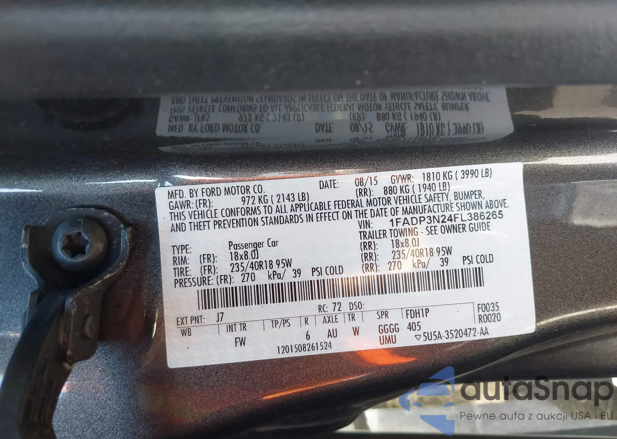 VIN: 1FADP3N24FL386265