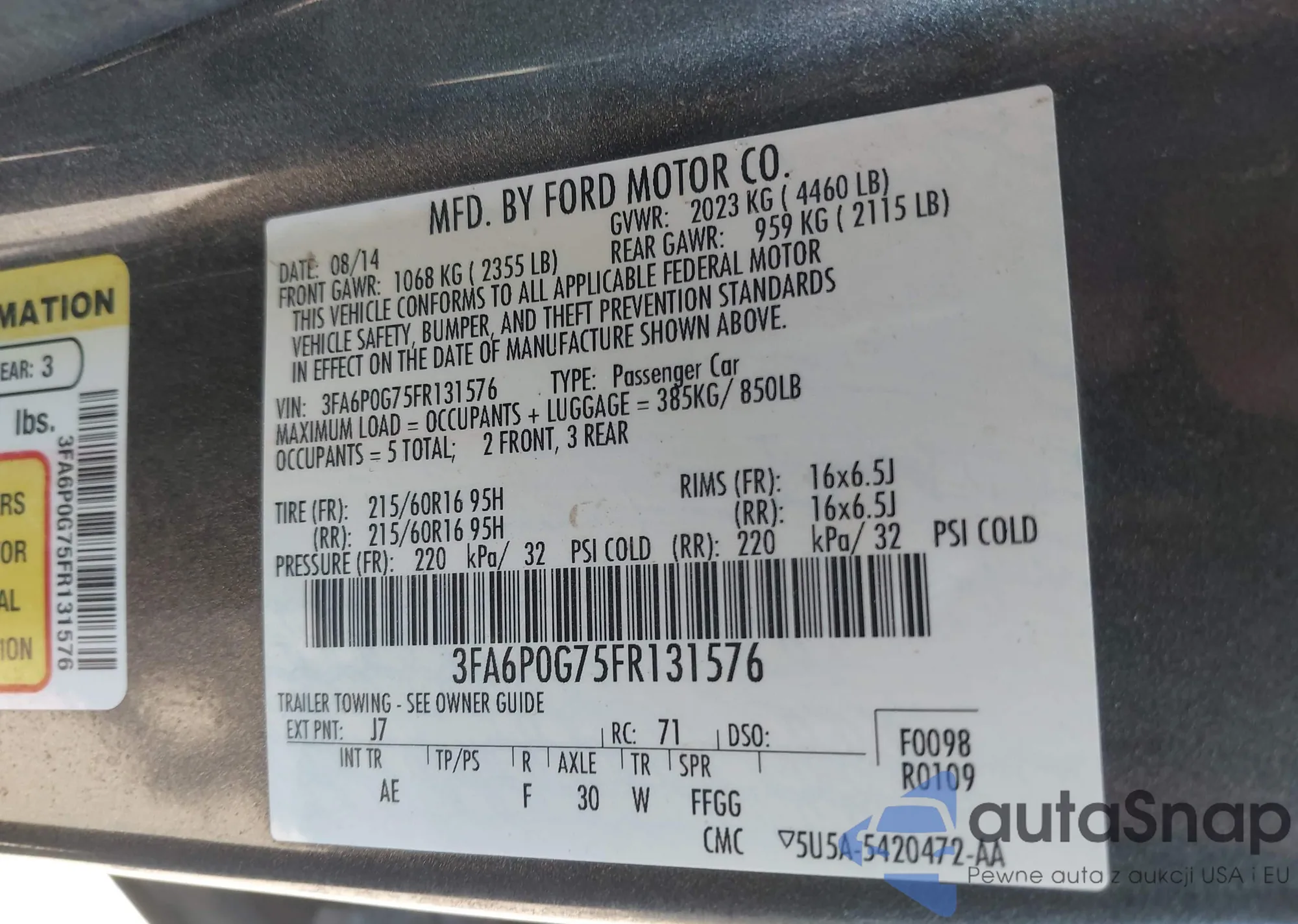 VIN: 3FA6P0G75FR131576