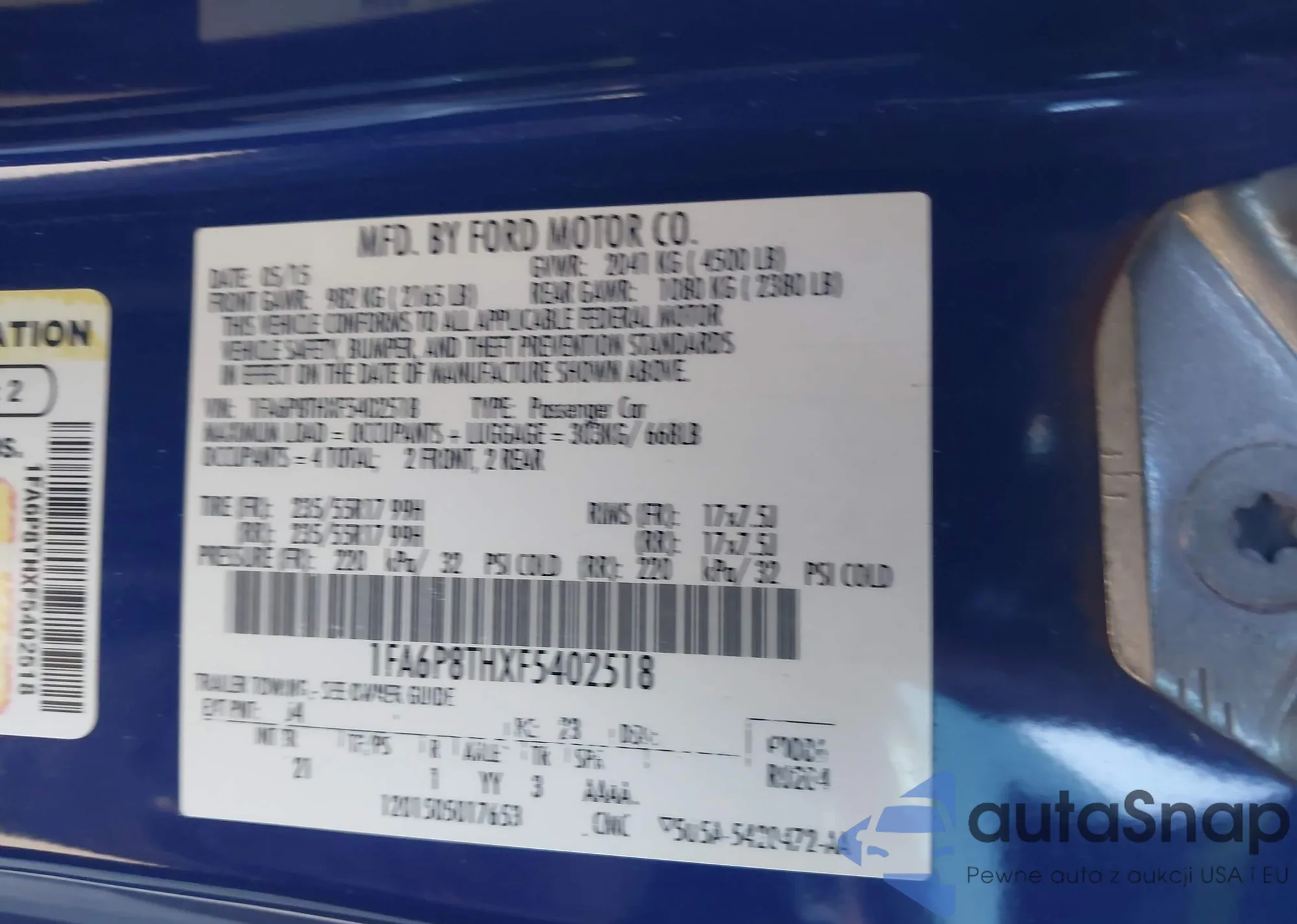 VIN: 1FA6P8THXF5402518
