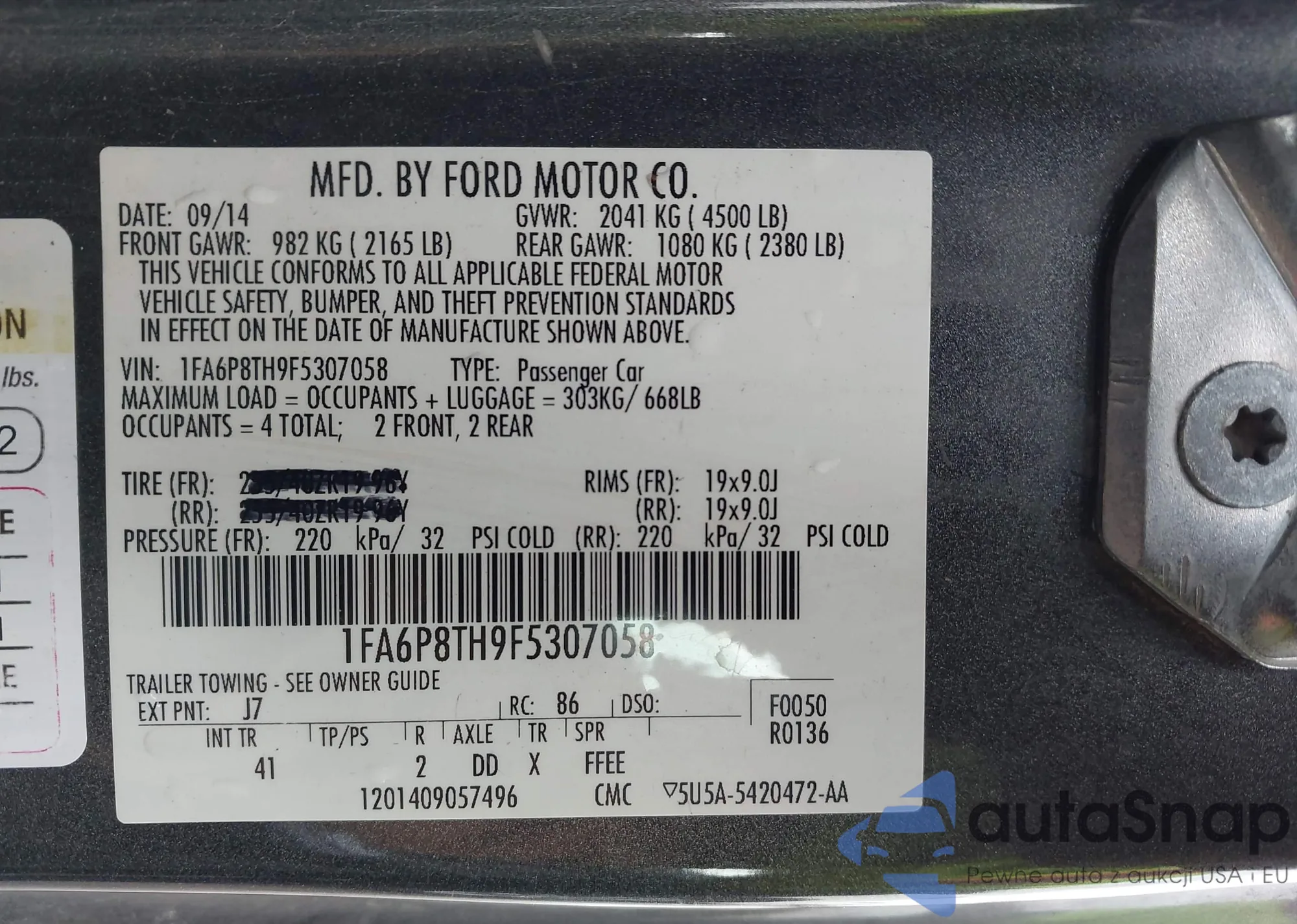 • VIN: 1FA6P8TH9F5307058
