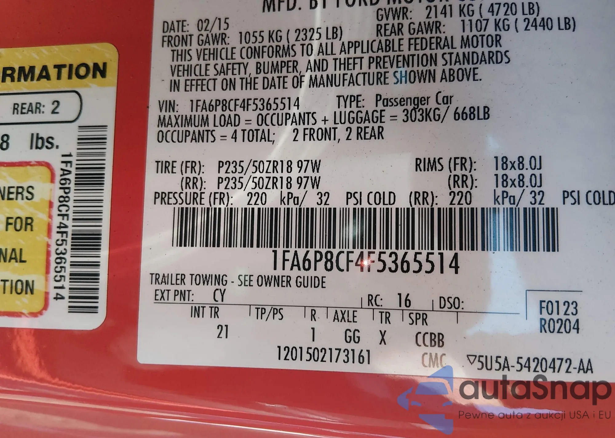 • VIN: 1FA6P8CF4F5365514