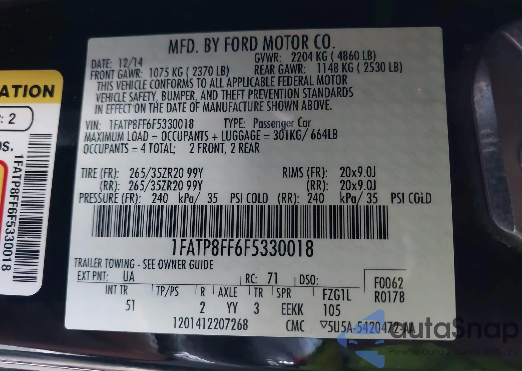 VIN: 1FATP8FF6F5330018