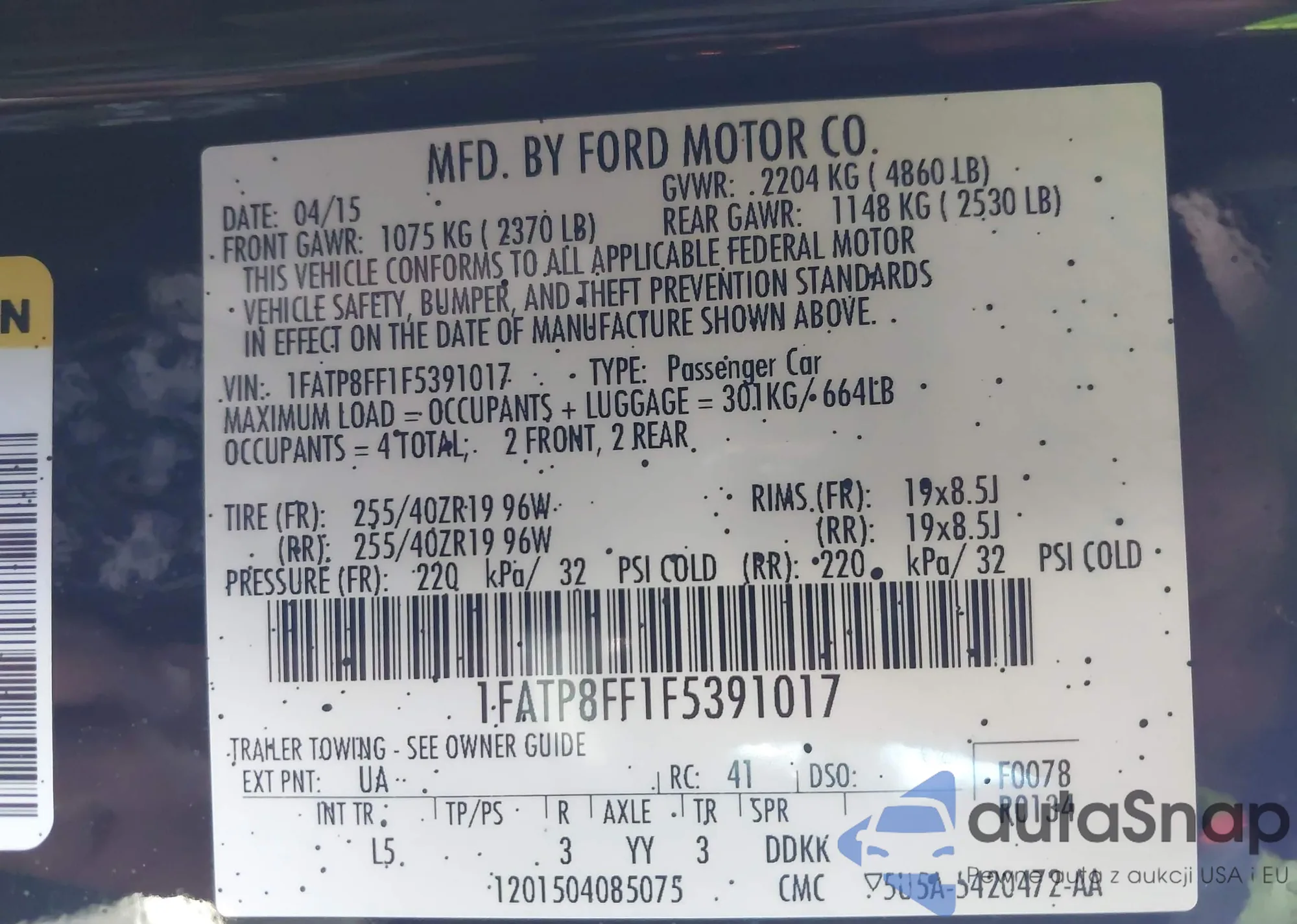 VIN: 1FATP8FF1F5391017