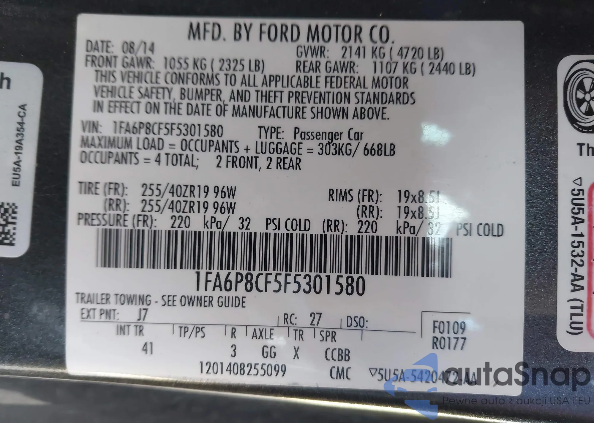 VIN: 1FA6P8CF5F5301580