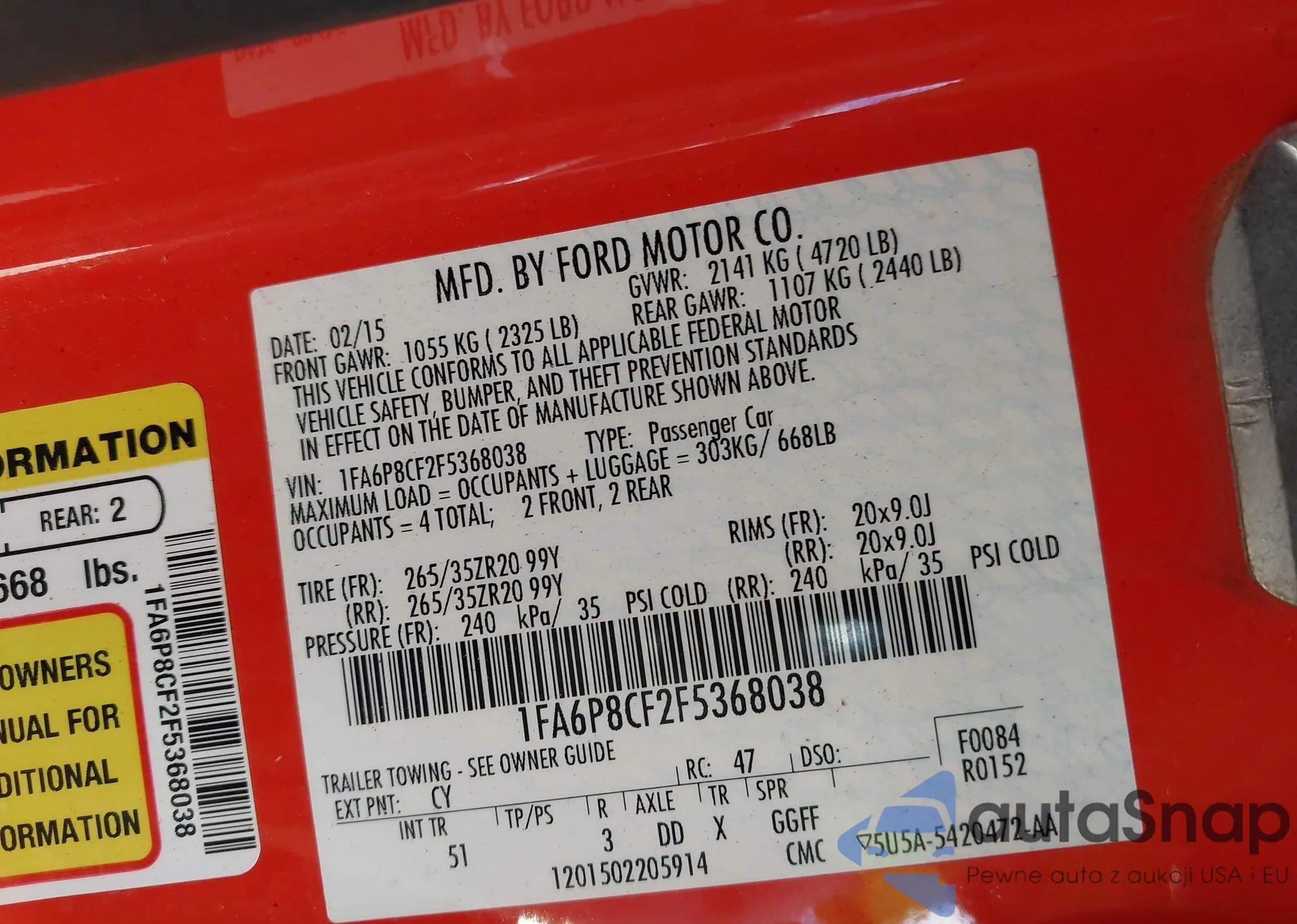 VIN: 1FA6P8CF2F5368038