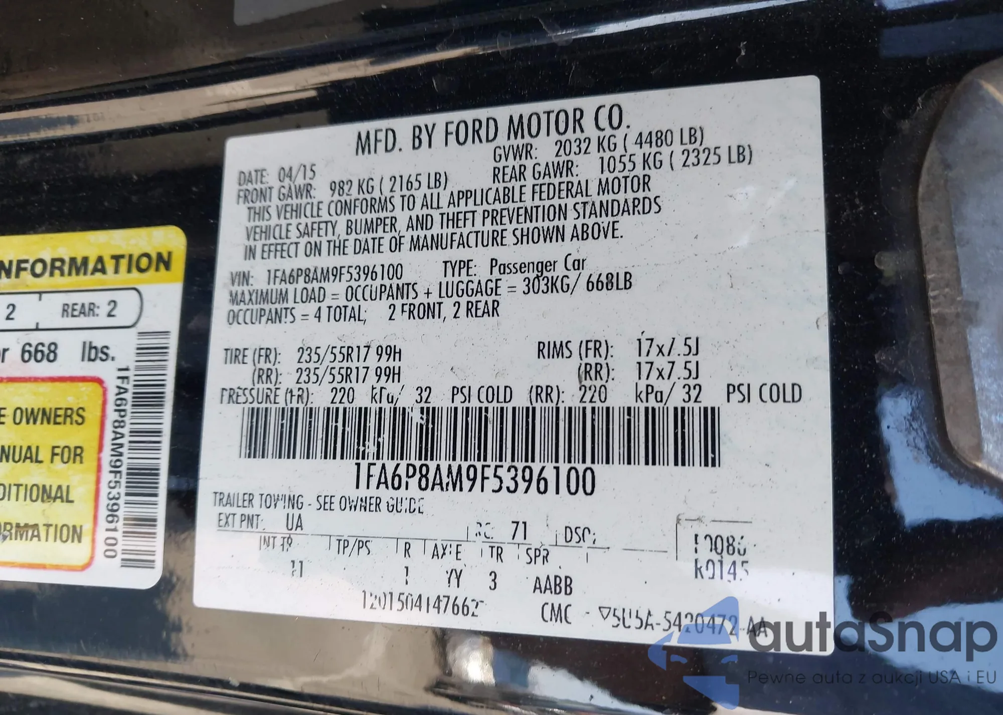 VIN: 1FA6P8AM9F5396100