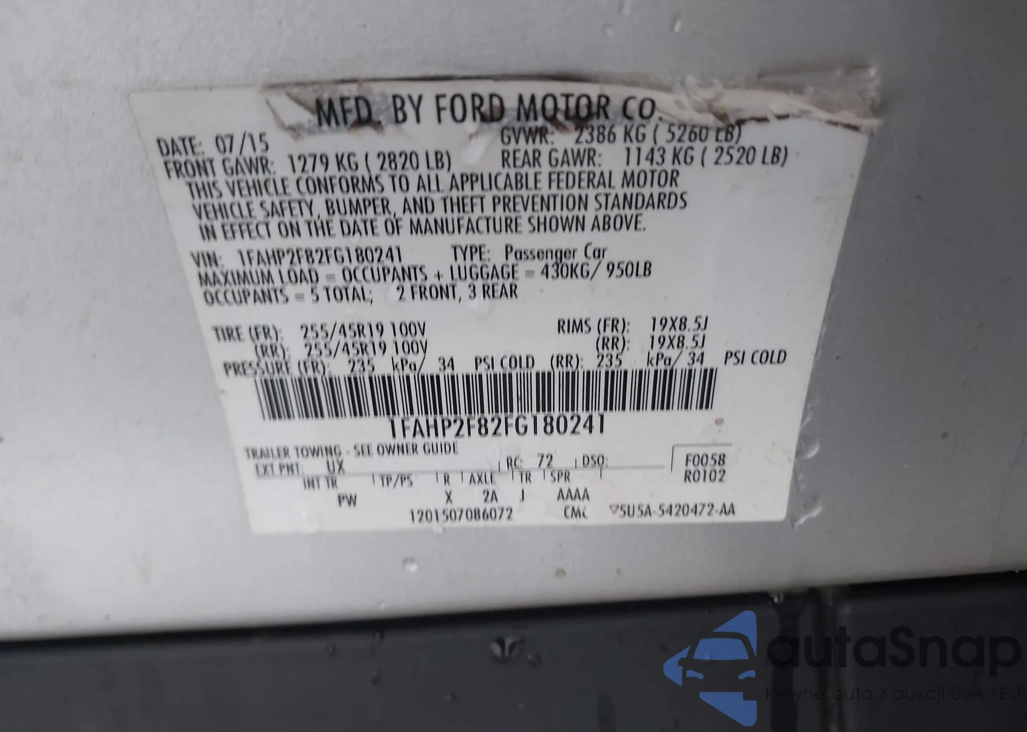 • VIN: 1FAHP2F82FG180241