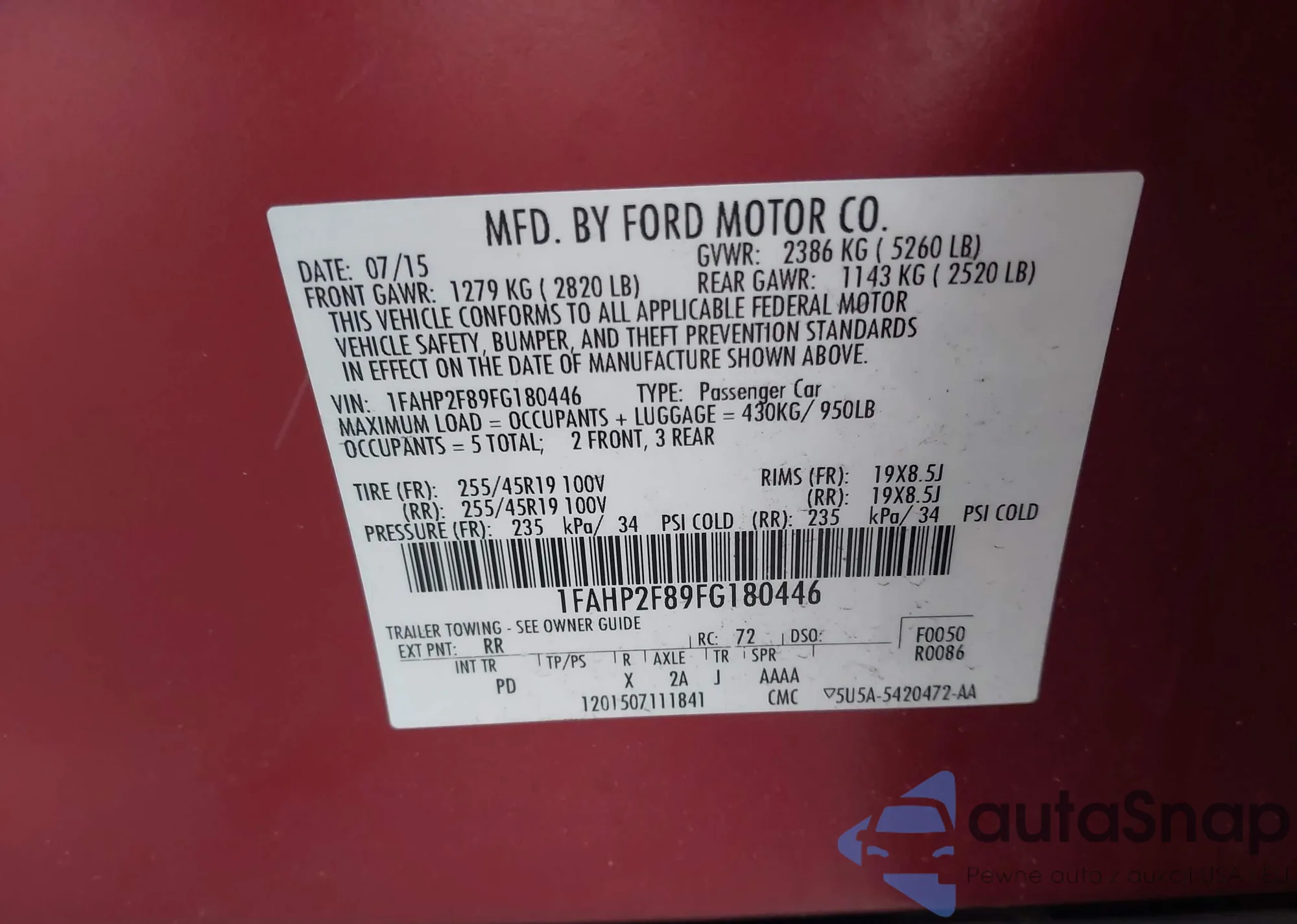 • VIN: 1FAHP2F89FG180446