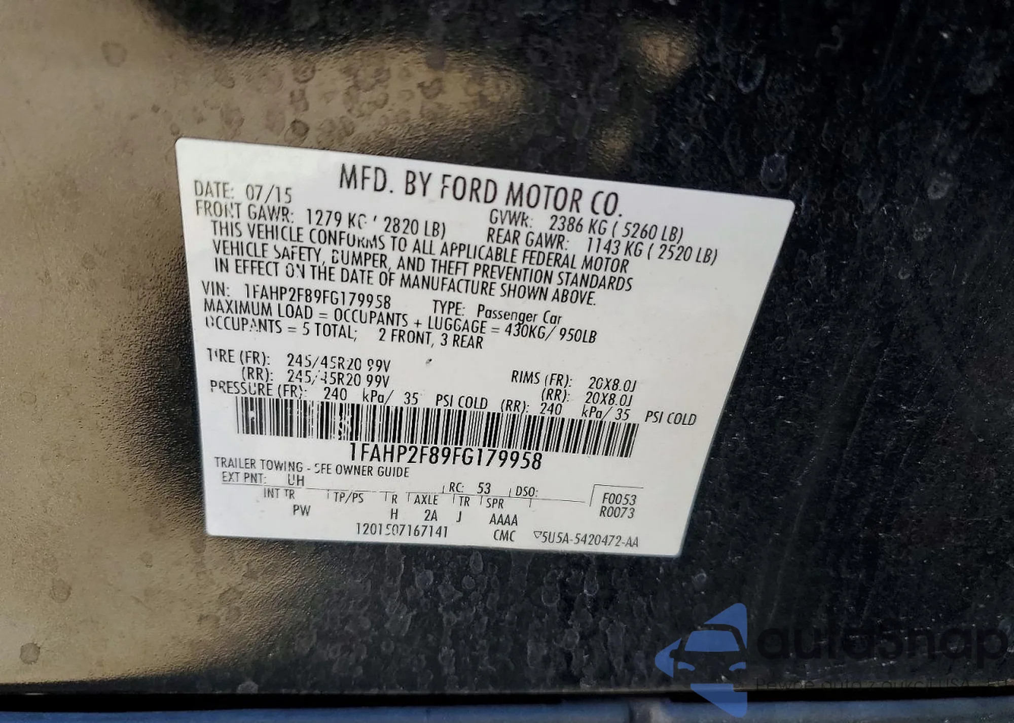 VIN: 1FAHP2F89FG179958