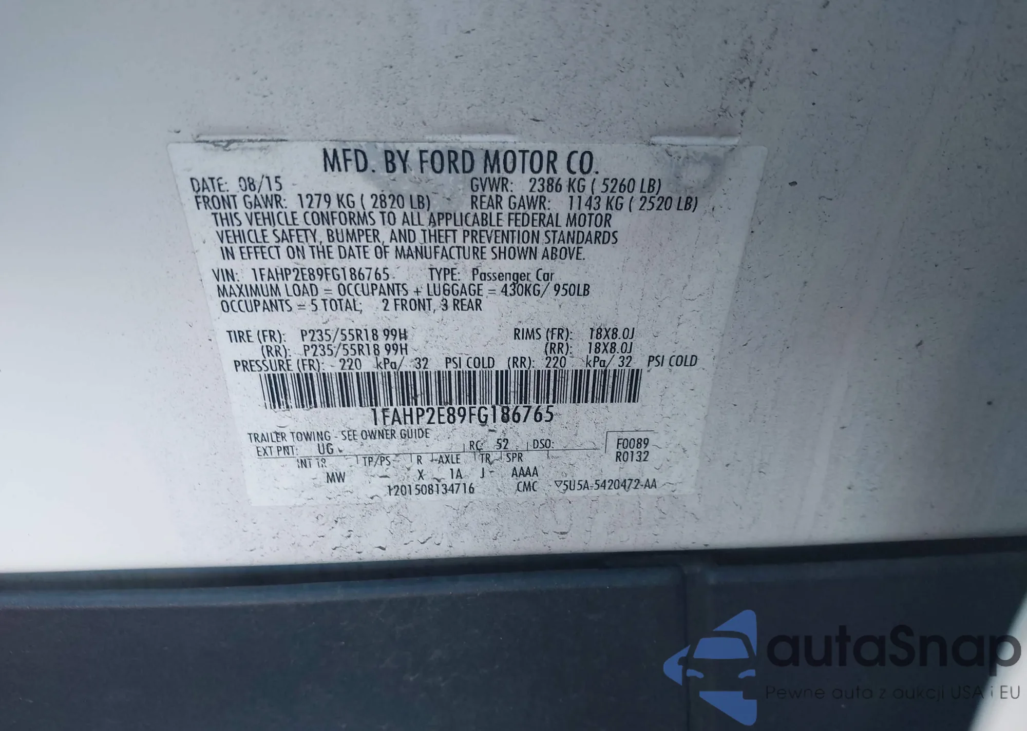 Samochód Ford Taurus 2015 (VIN 1FAHP2E89FG186765) nie był wcześniej licytowany. Dokumenty są czyste, przebieg odpowiada lub jest niższy niż średnia rynku. Sprzedaje go firma ubezpieczeniowa – polecamy zakup. Dostawa do portu zajmie ok. 6–8 tygodni.