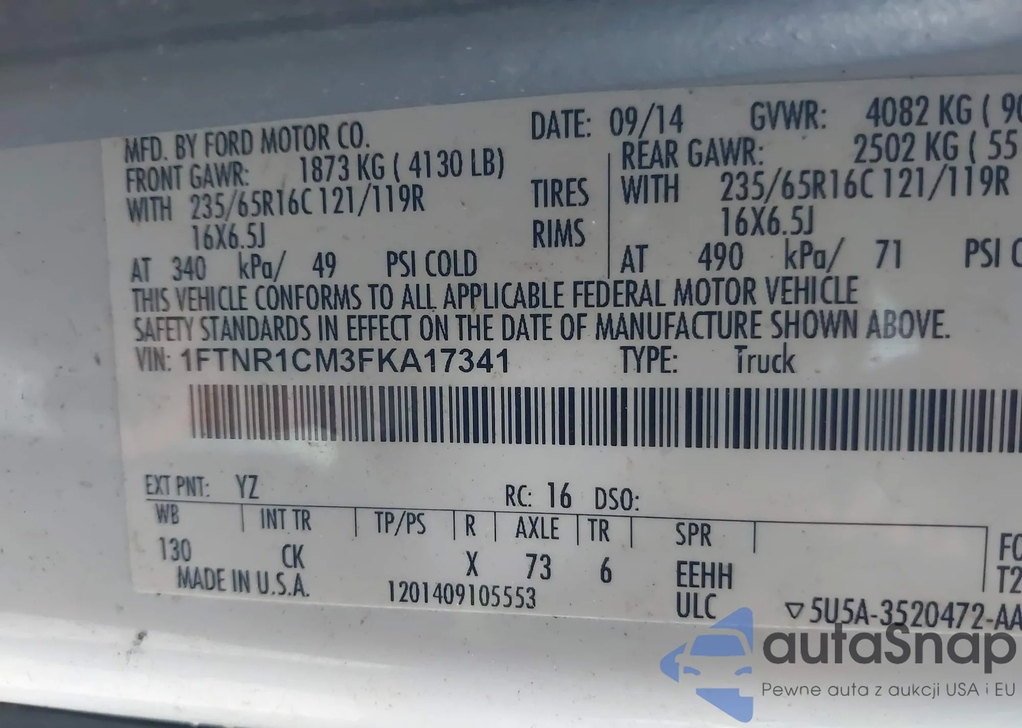 VIN: 1FTNR1CM3FKA17341