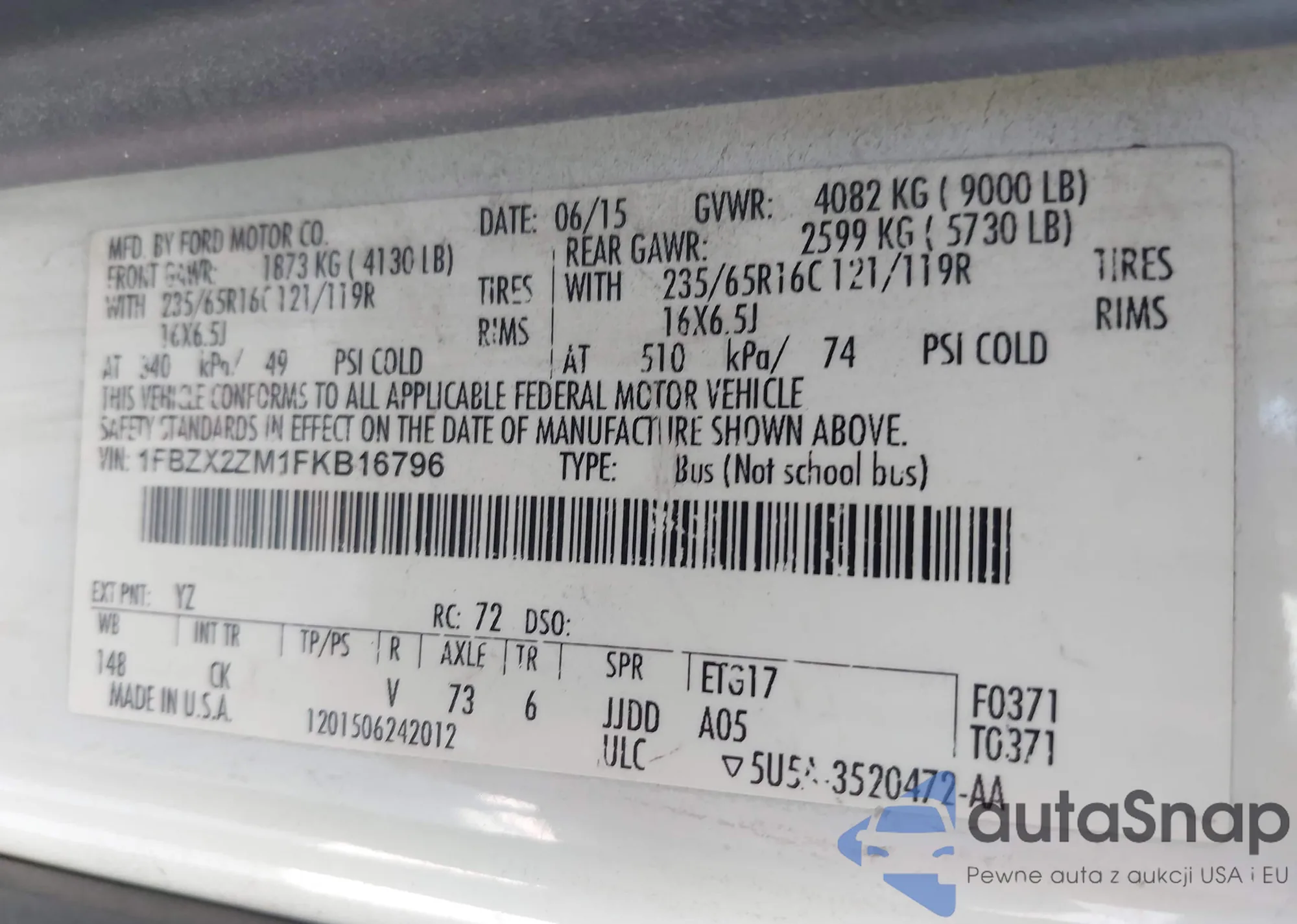 VIN: 1FBZX2ZM1FKB16796