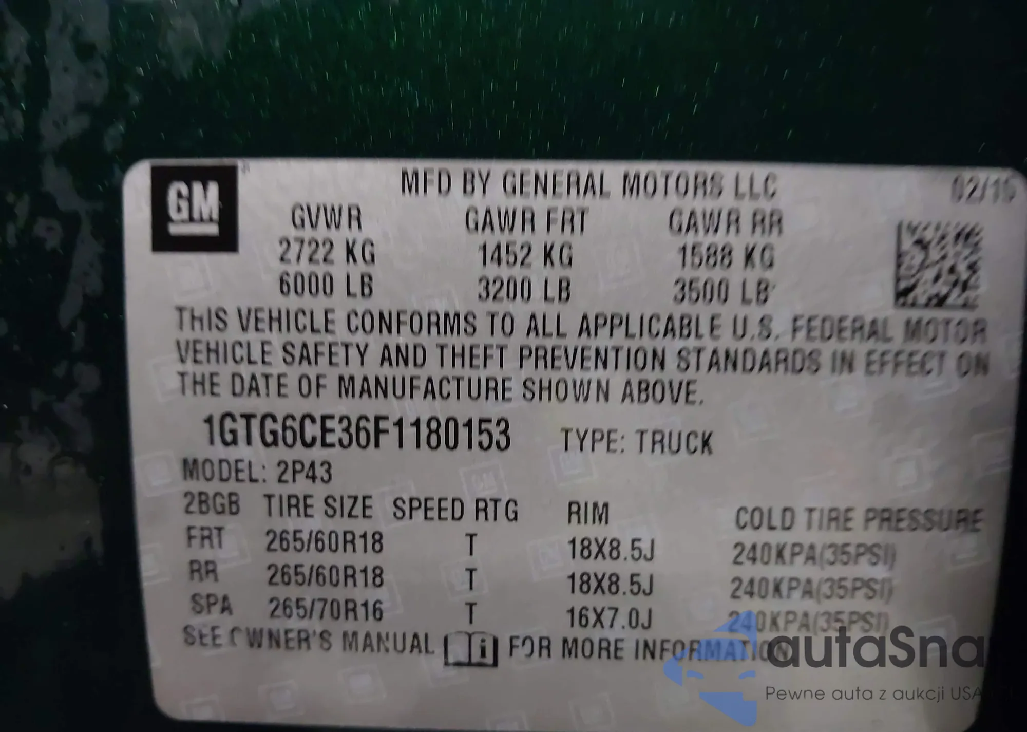 VIN: 1GTG6CE36F1180153