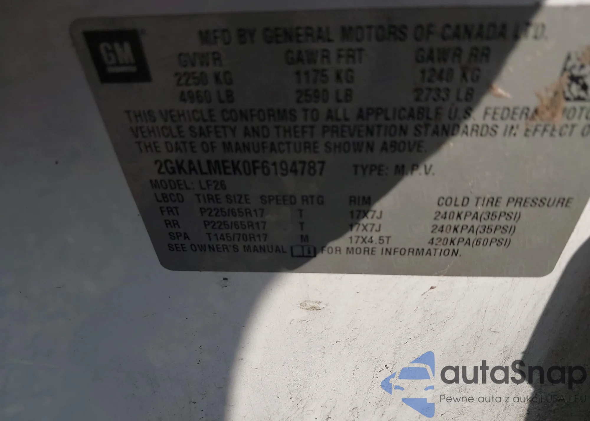 VIN: 2GKALMEK0F6194787