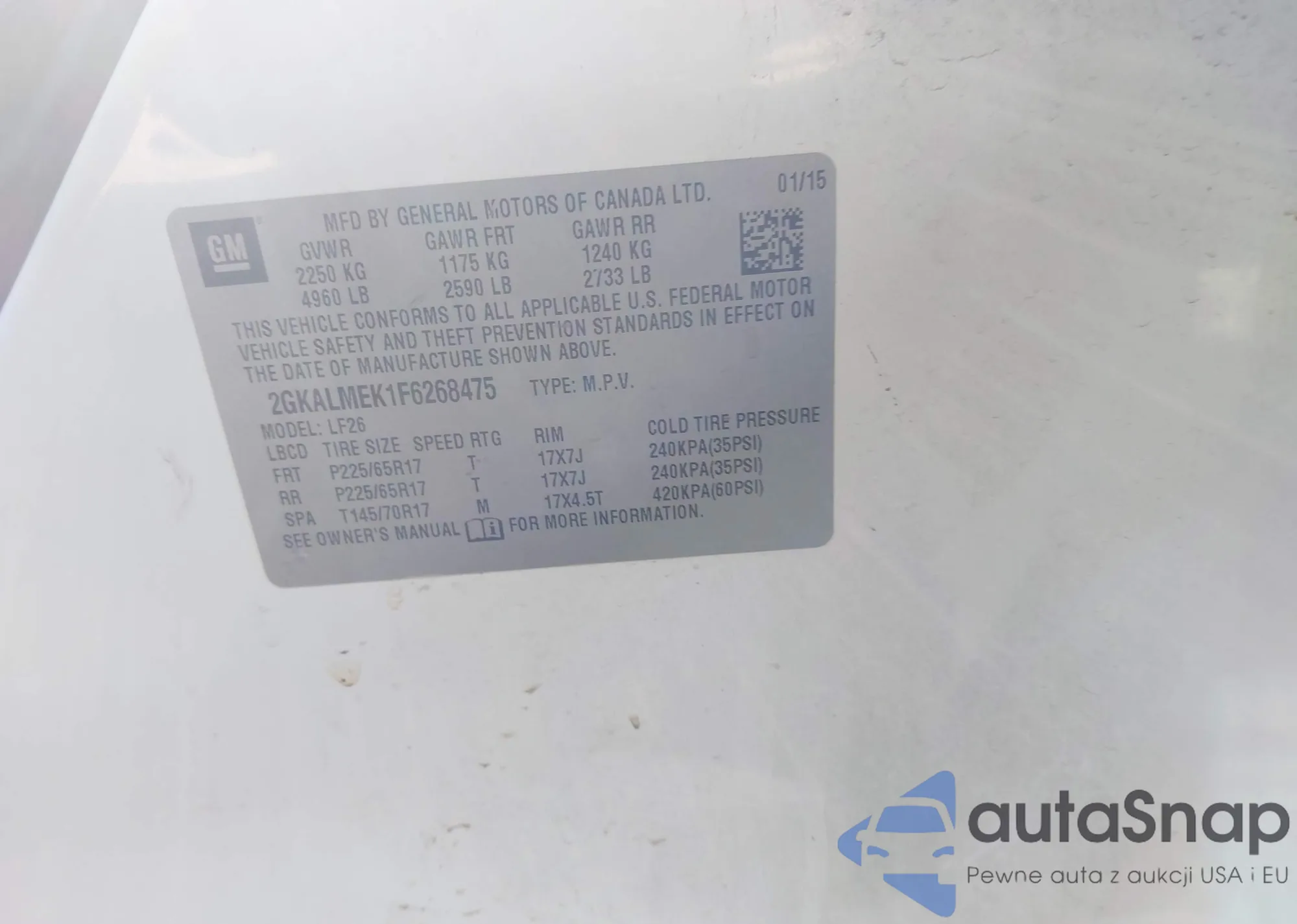 • VIN: 2GKALMEK1F6268475