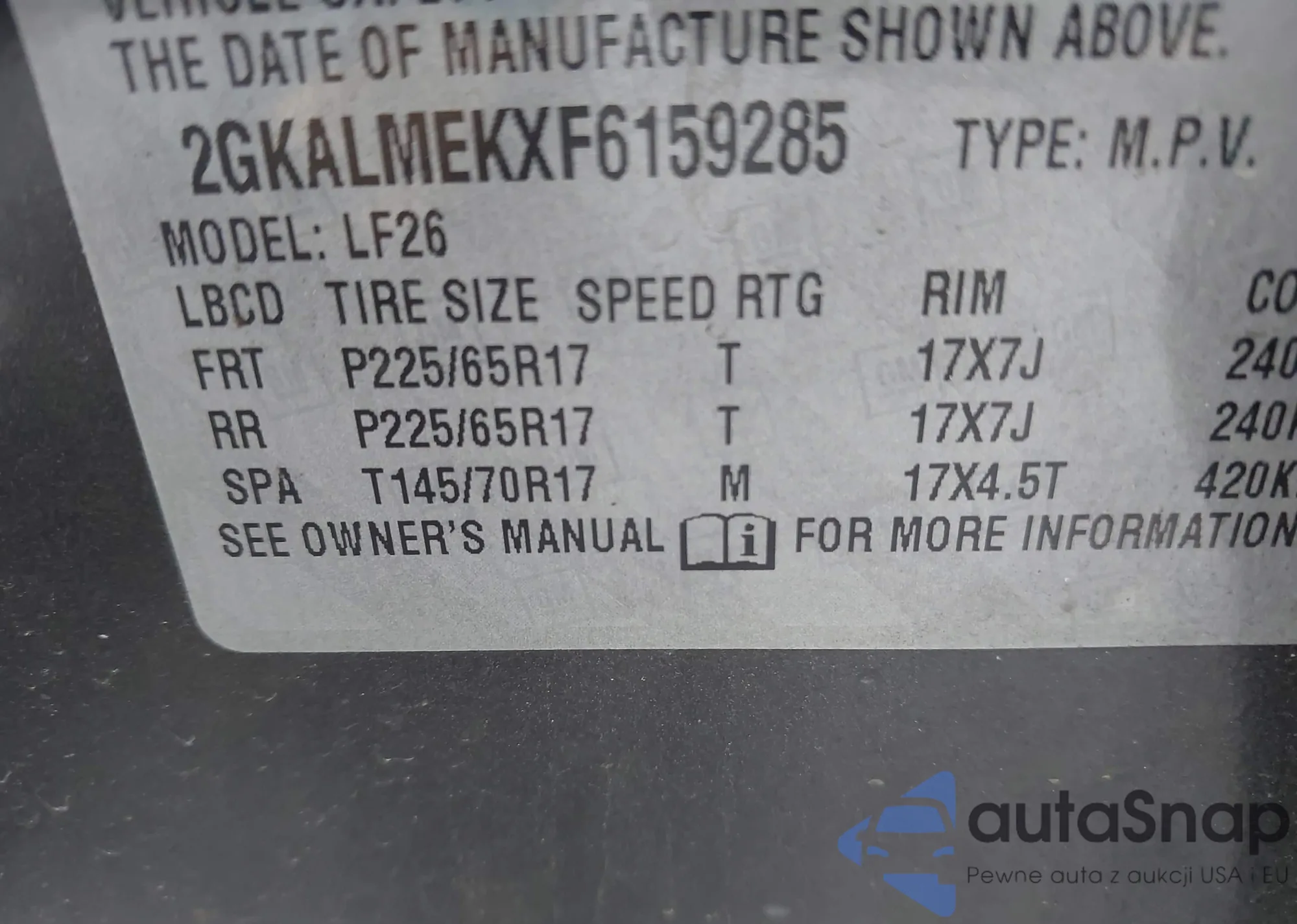 VIN: 2GKALMEKXF6159285