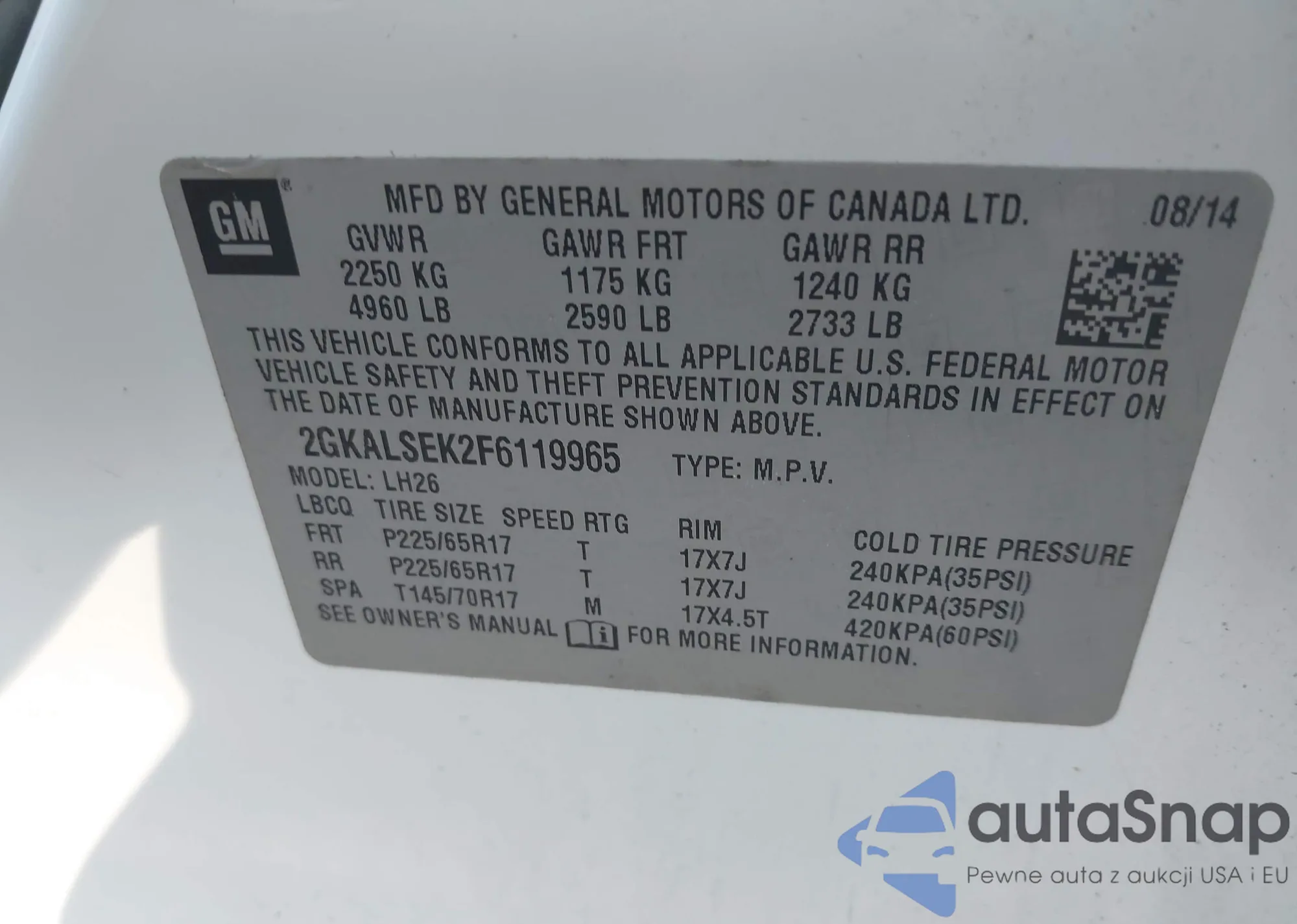 VIN: 2GKALSEK2F6119965