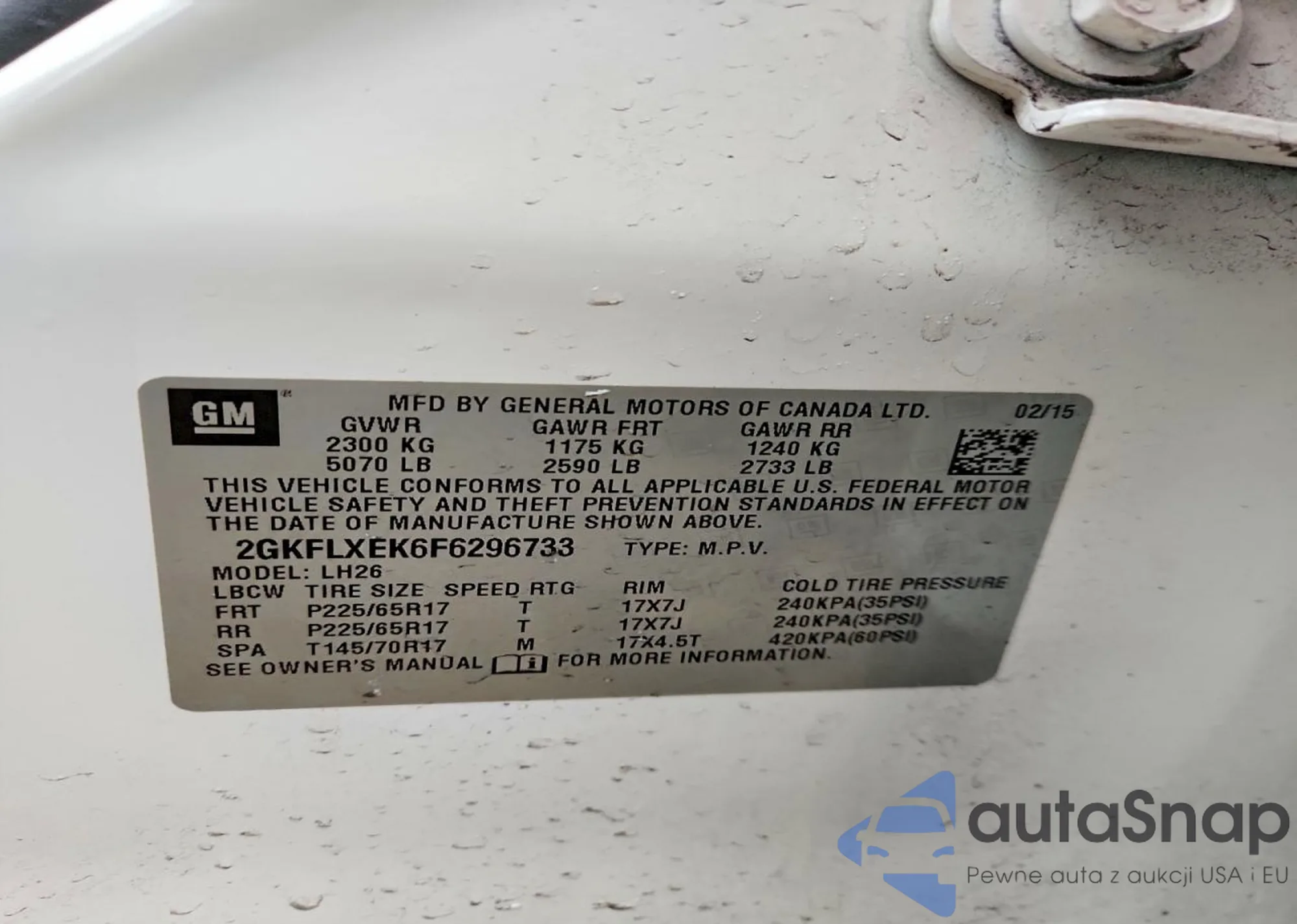 VIN: 2GKFLXEK6F6296733