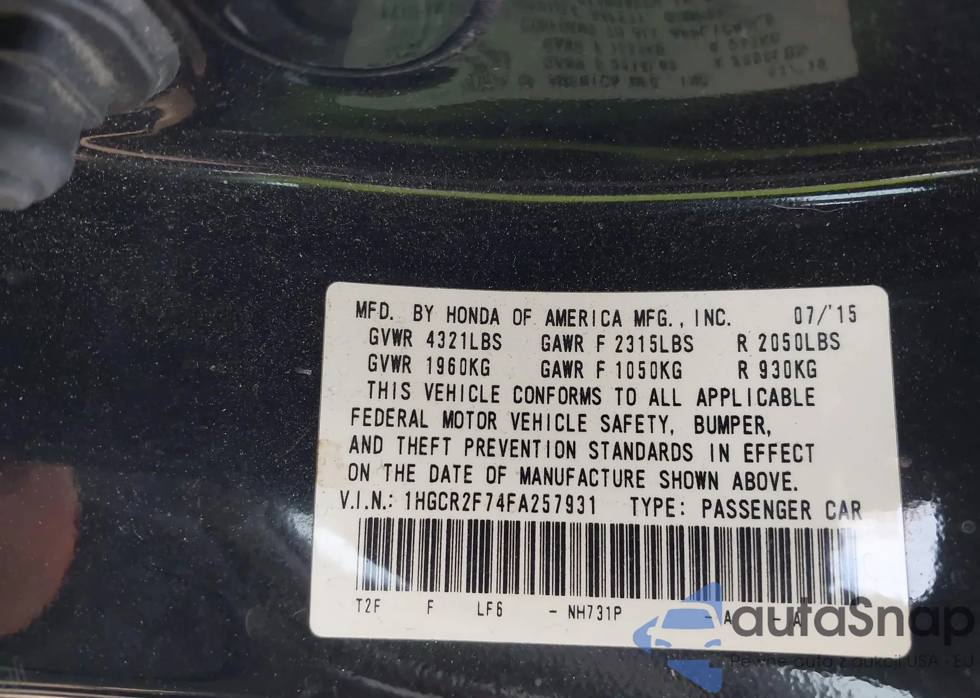 VIN: 1HGCR2F74FA257931