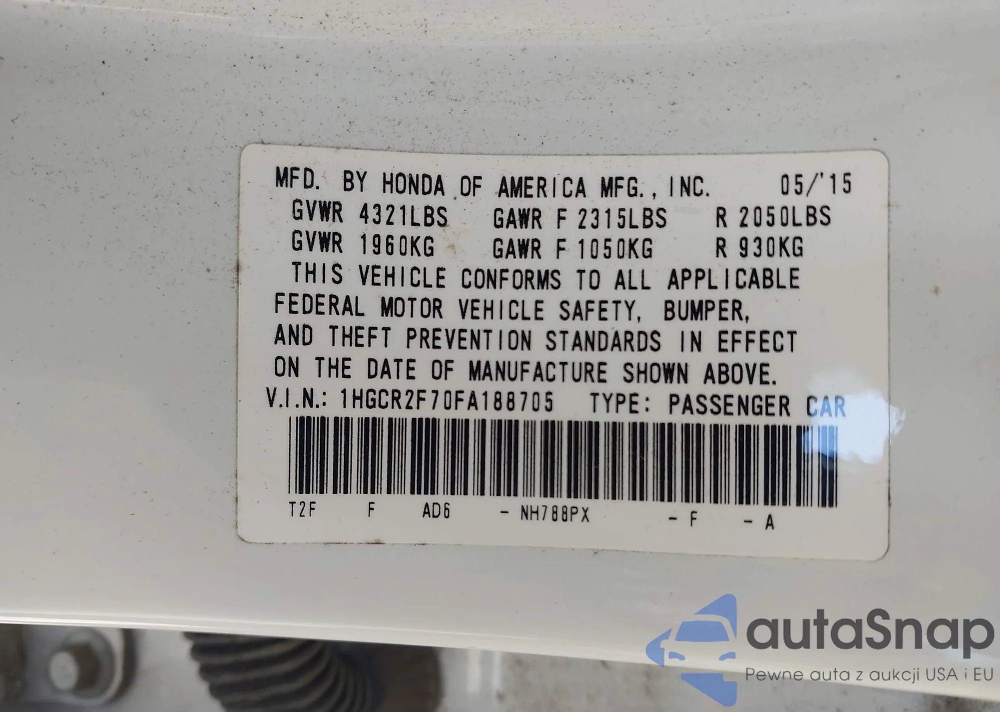 VIN: 1HGCR2F70FA188705