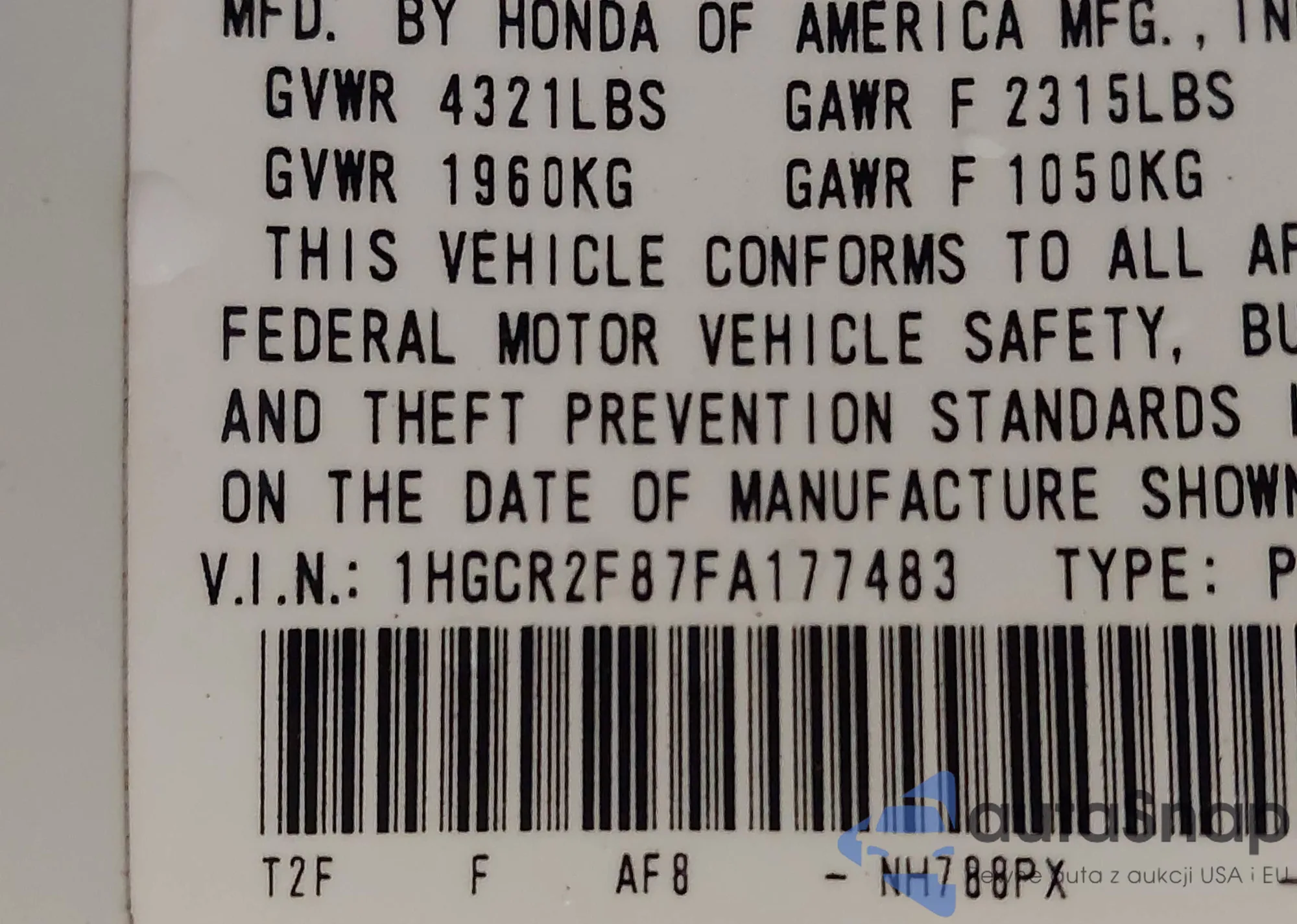 VIN: 1HGCR2F87FA177483