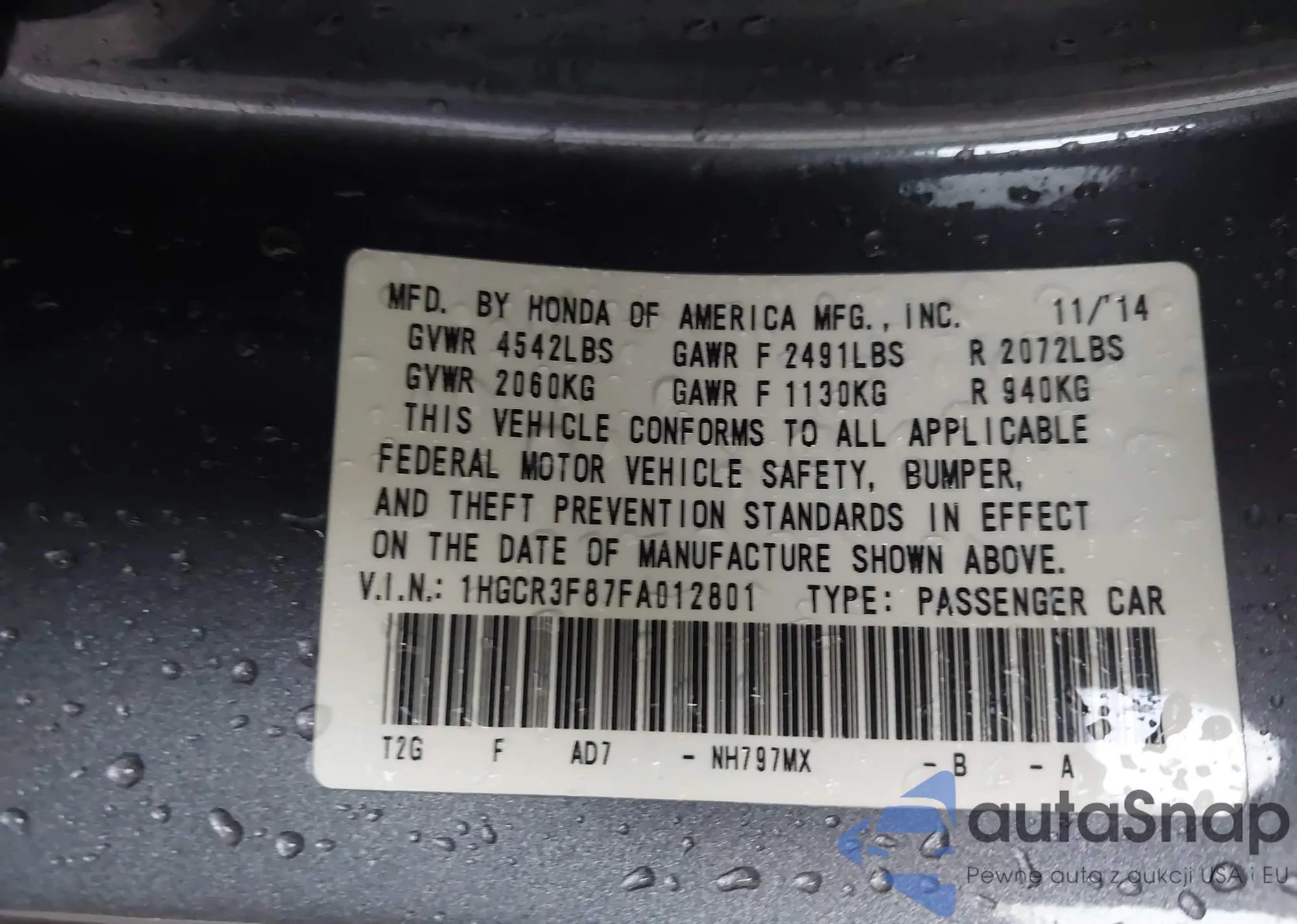 VIN: 1HGCR3F87FA012801