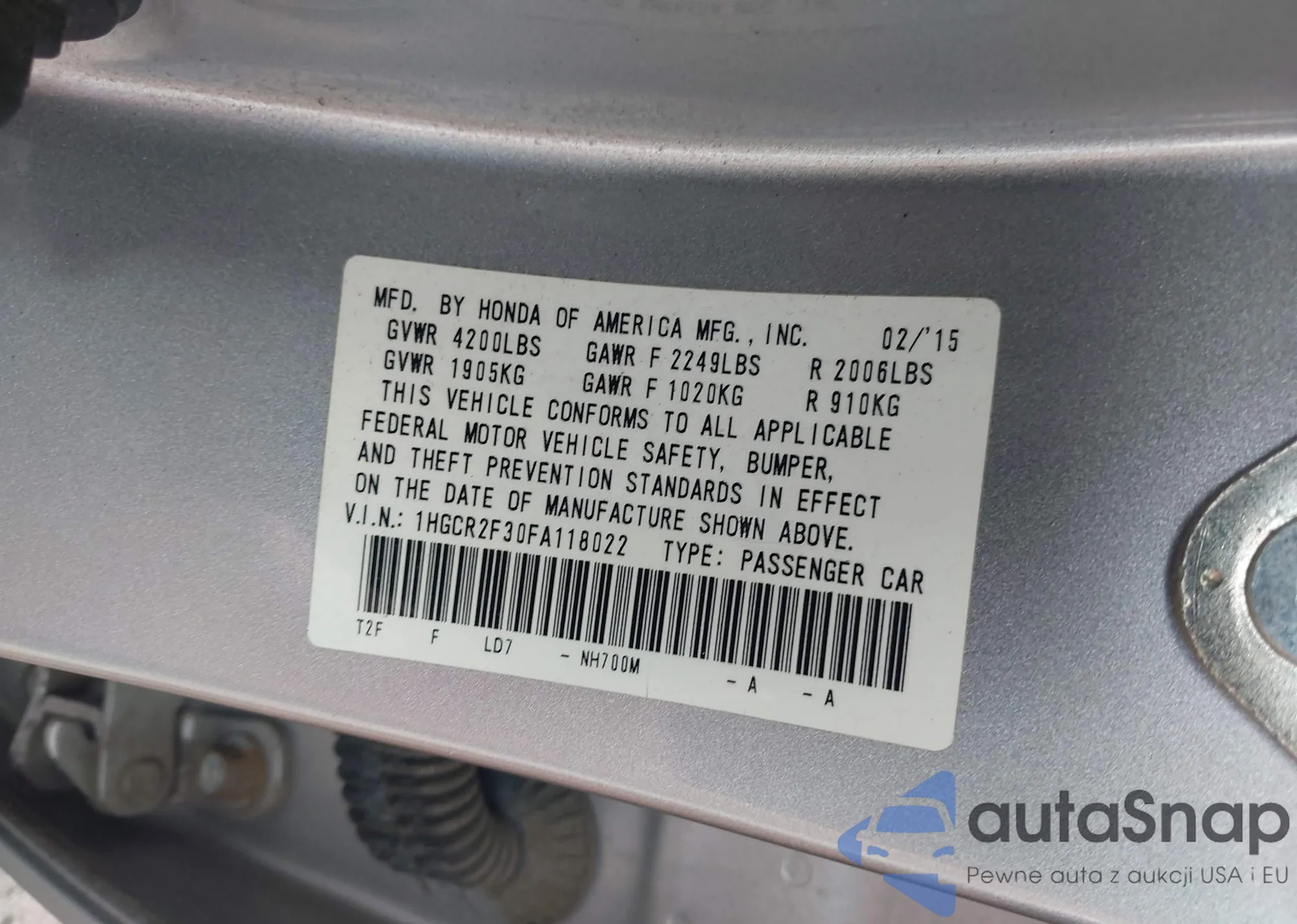 VIN: 1HGCR2F30FA118022