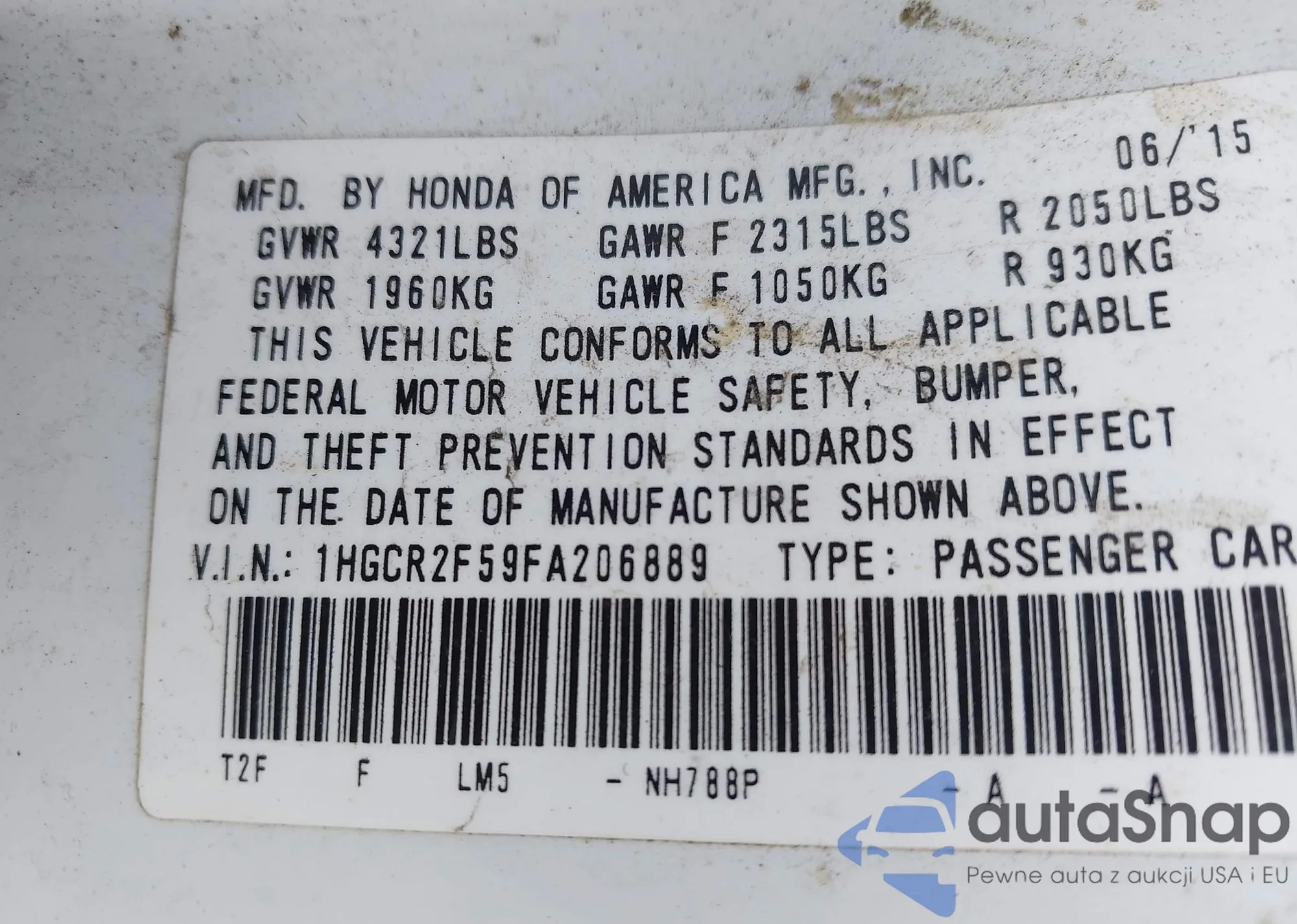 VIN: 1HGCR2F59FA206889