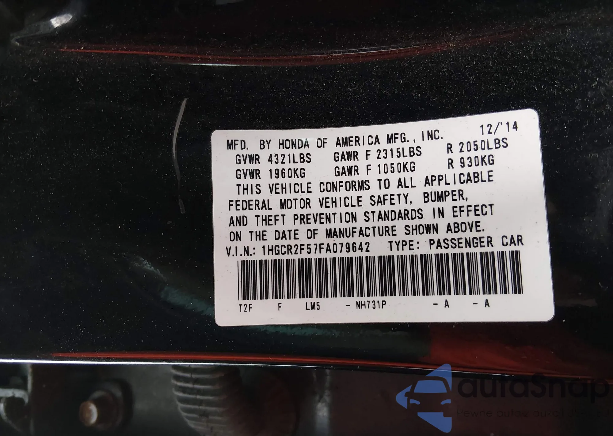VIN: 1HGCR2F57FA079642