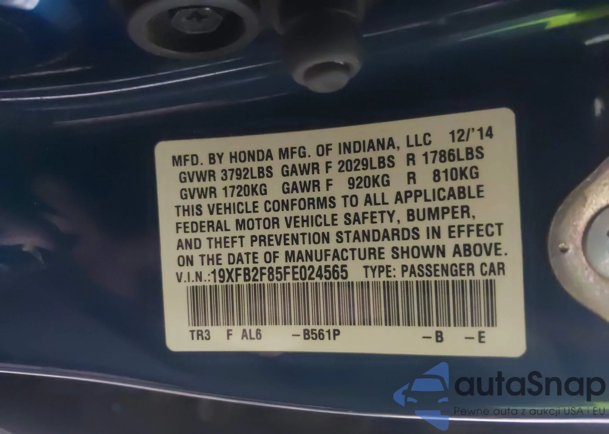 VIN: 19XFB2F85FE024565