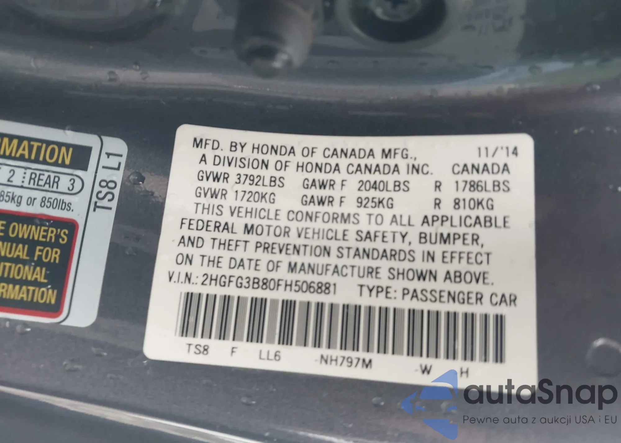 VIN: 2HGFG3B80FH506881
