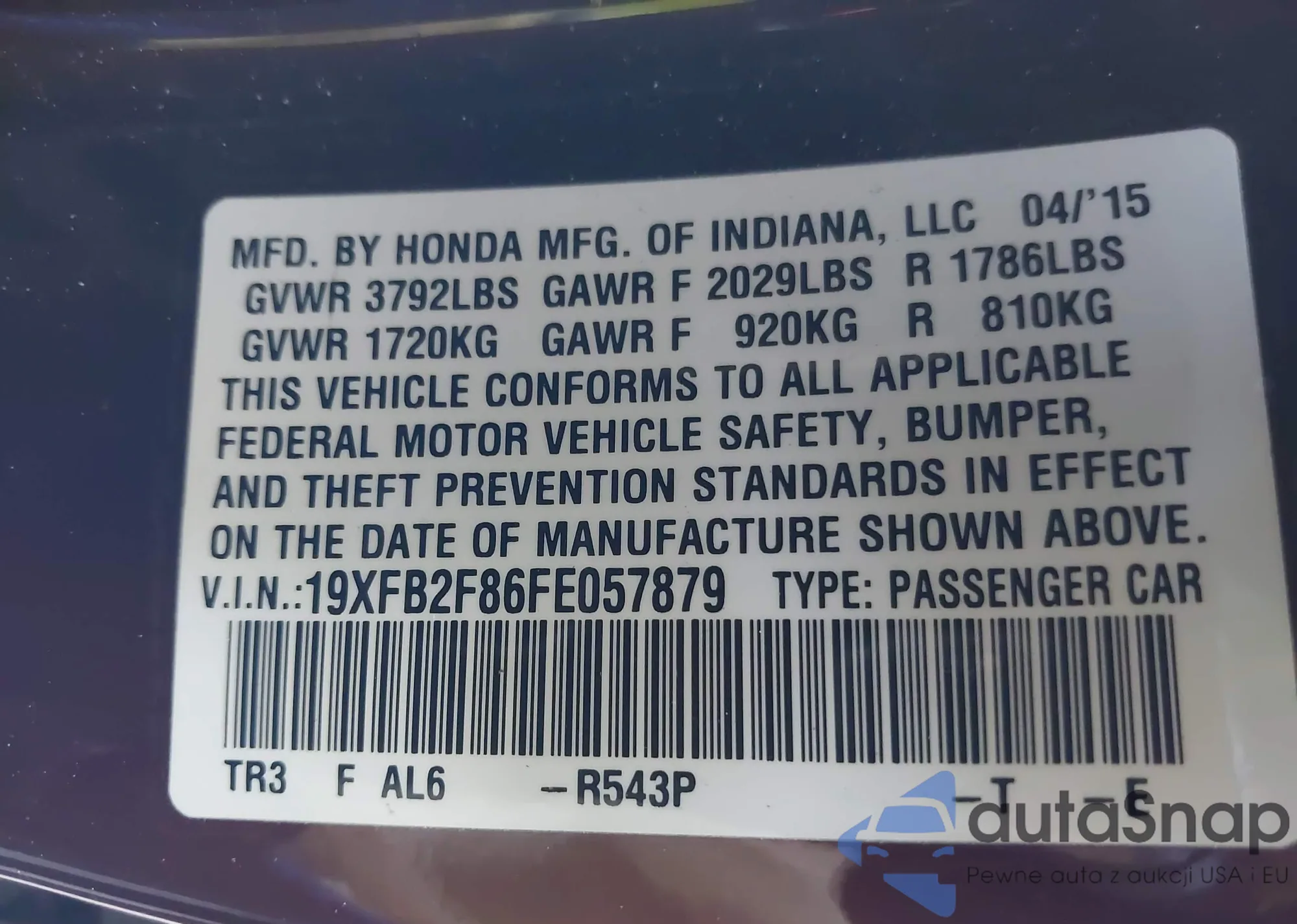 • VIN: 19XFB2F86FE057879