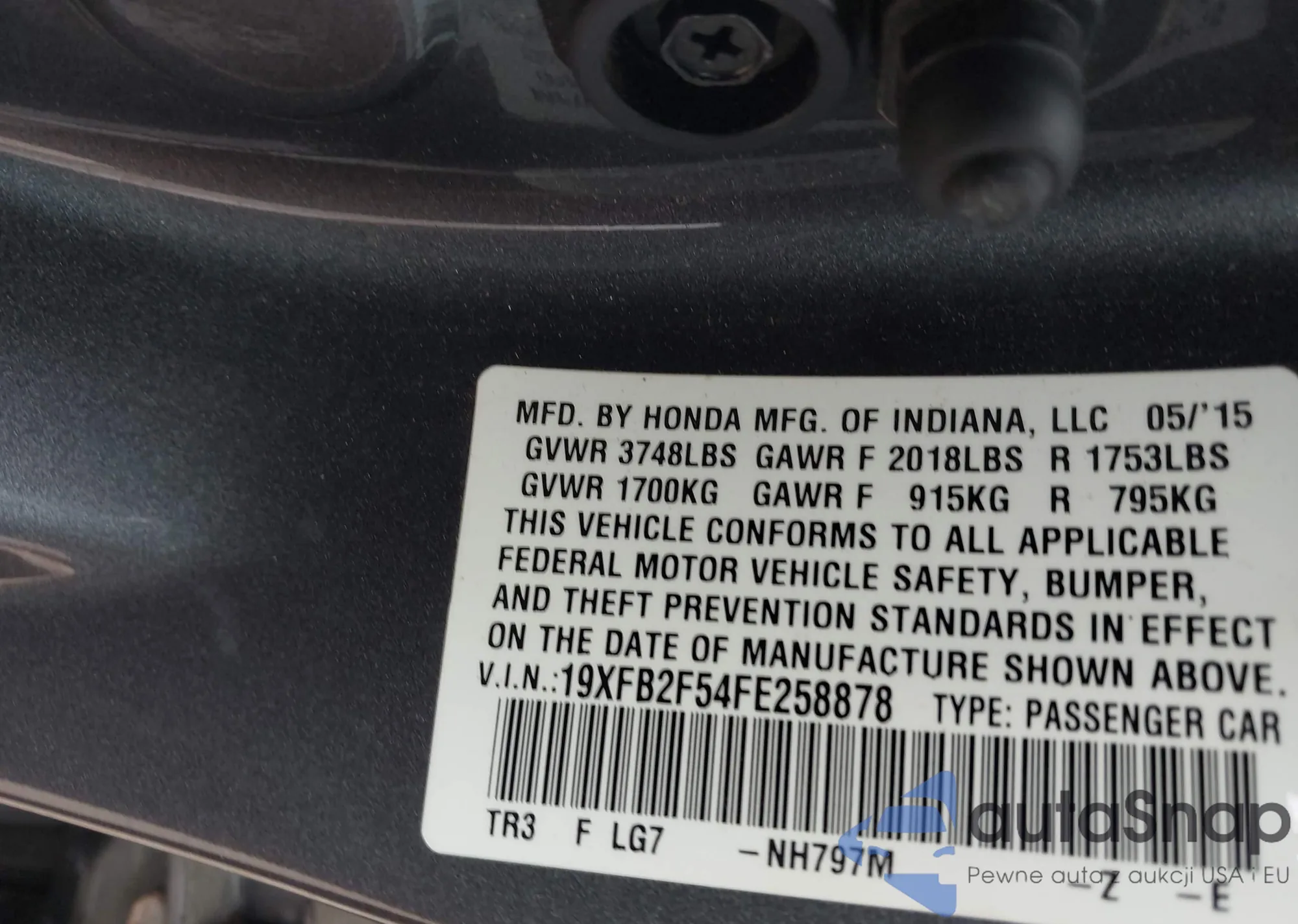 VIN: 19XFB2F54FE258878