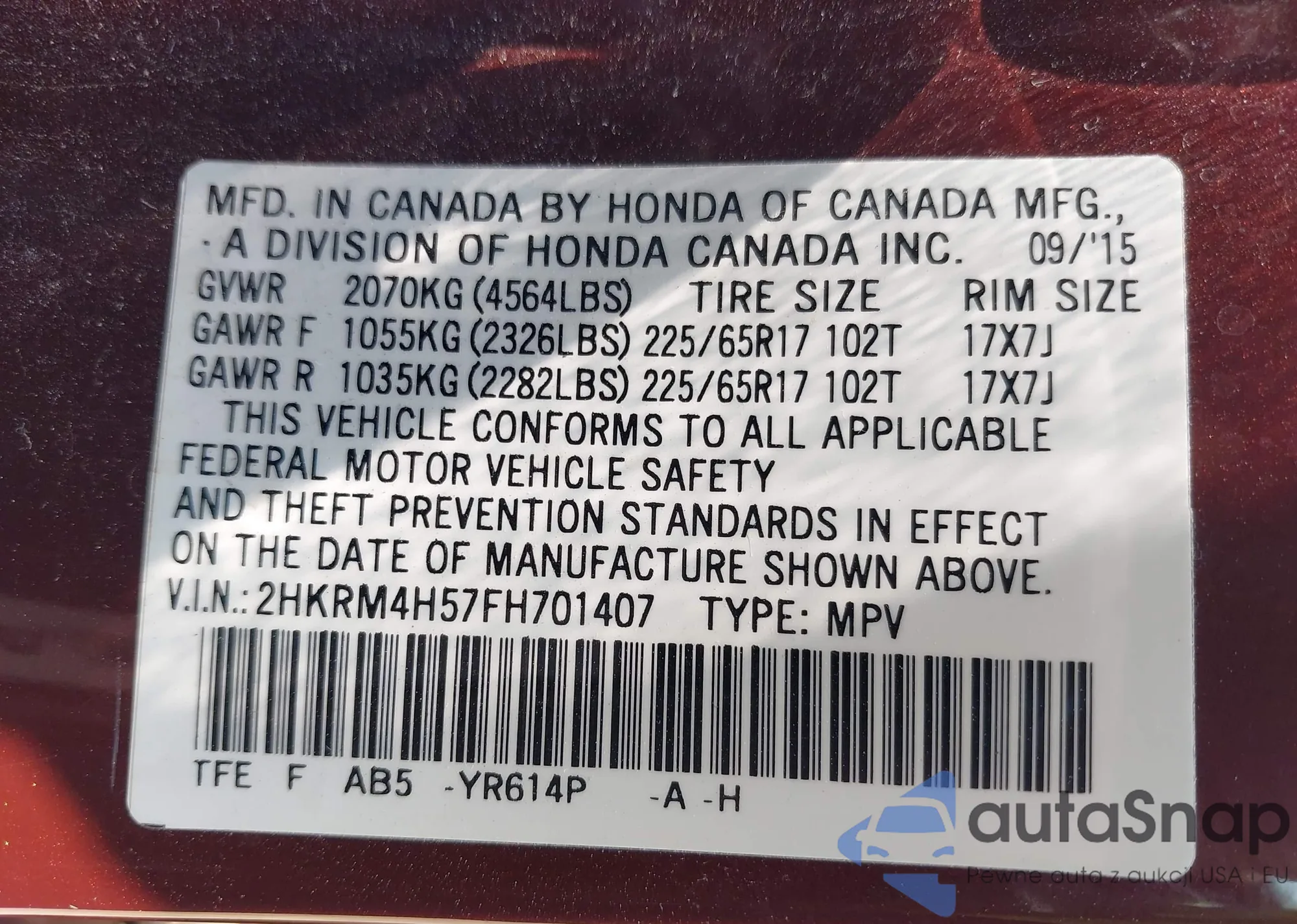 VIN: 2HKRM4H57FH701407