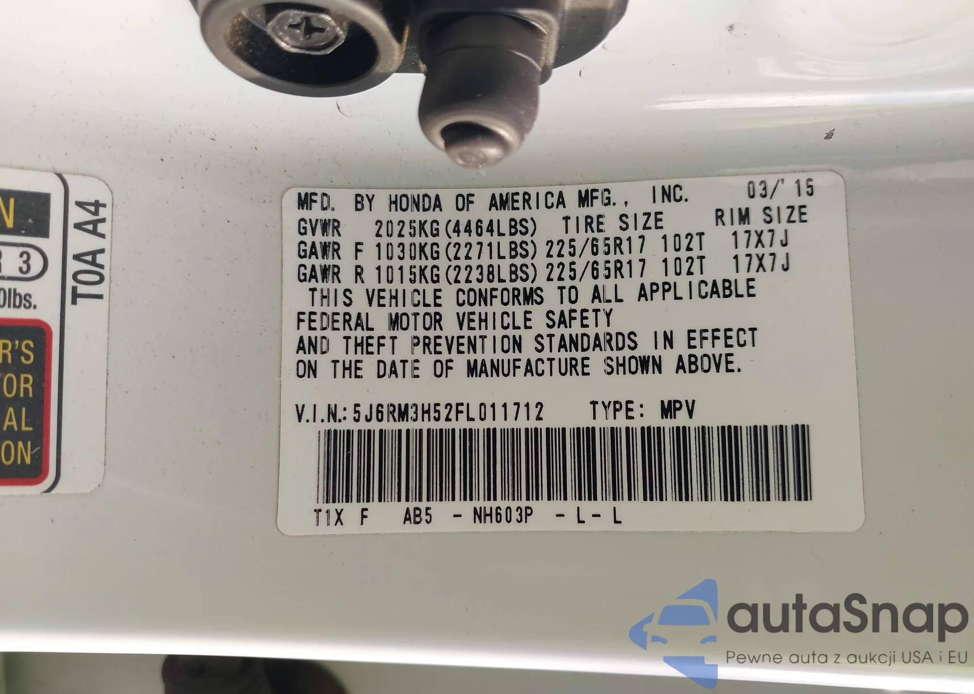VIN: 5J6RM3H52FL011712