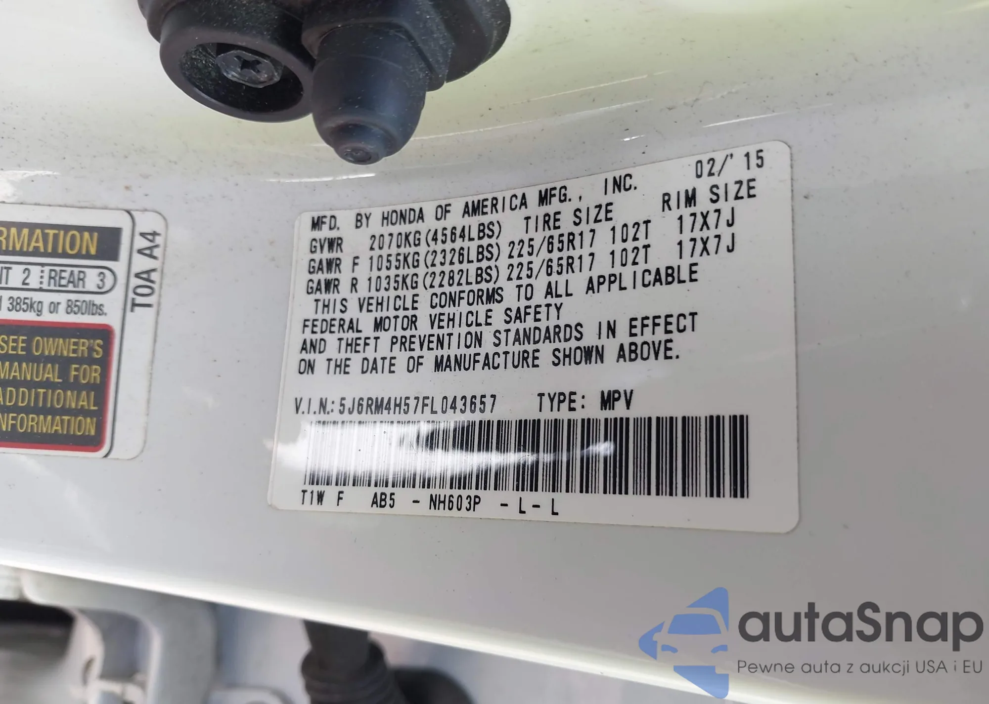 VIN: 5J6RM4H57FL043657