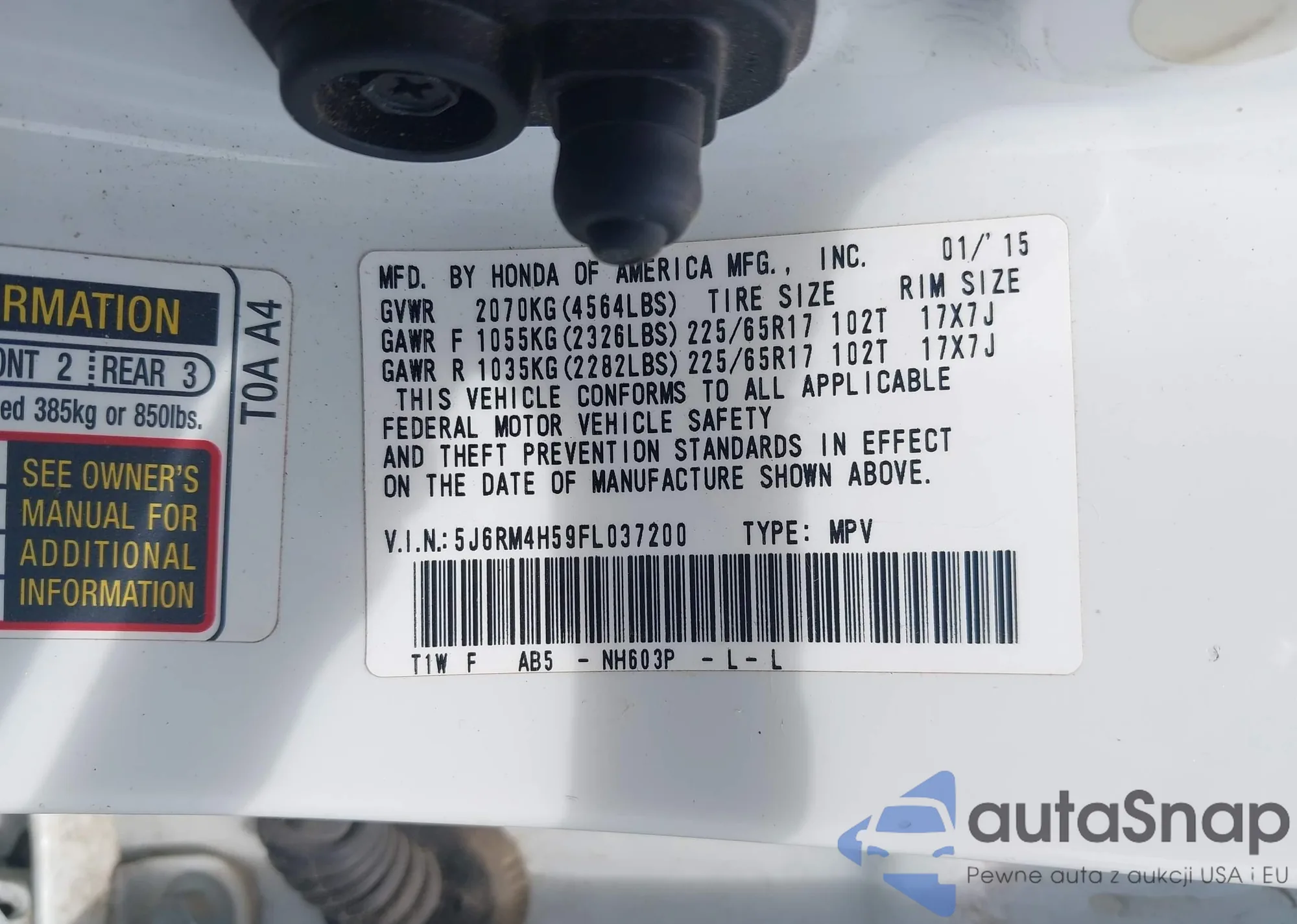 VIN: 5J6RM4H59FL037200