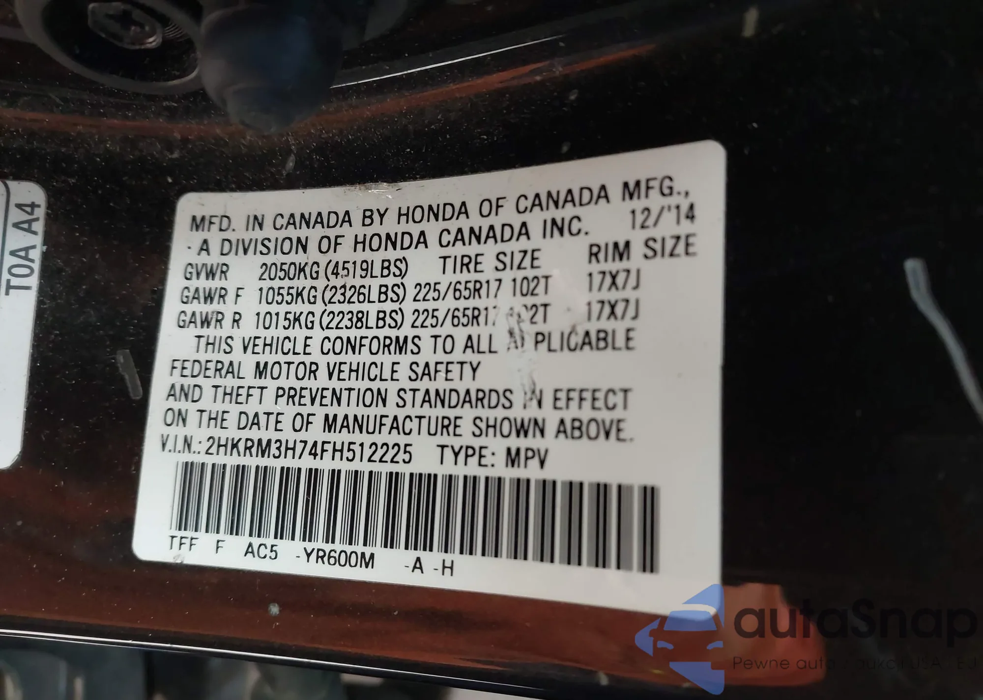 VIN: 2HKRM3H74FH512225