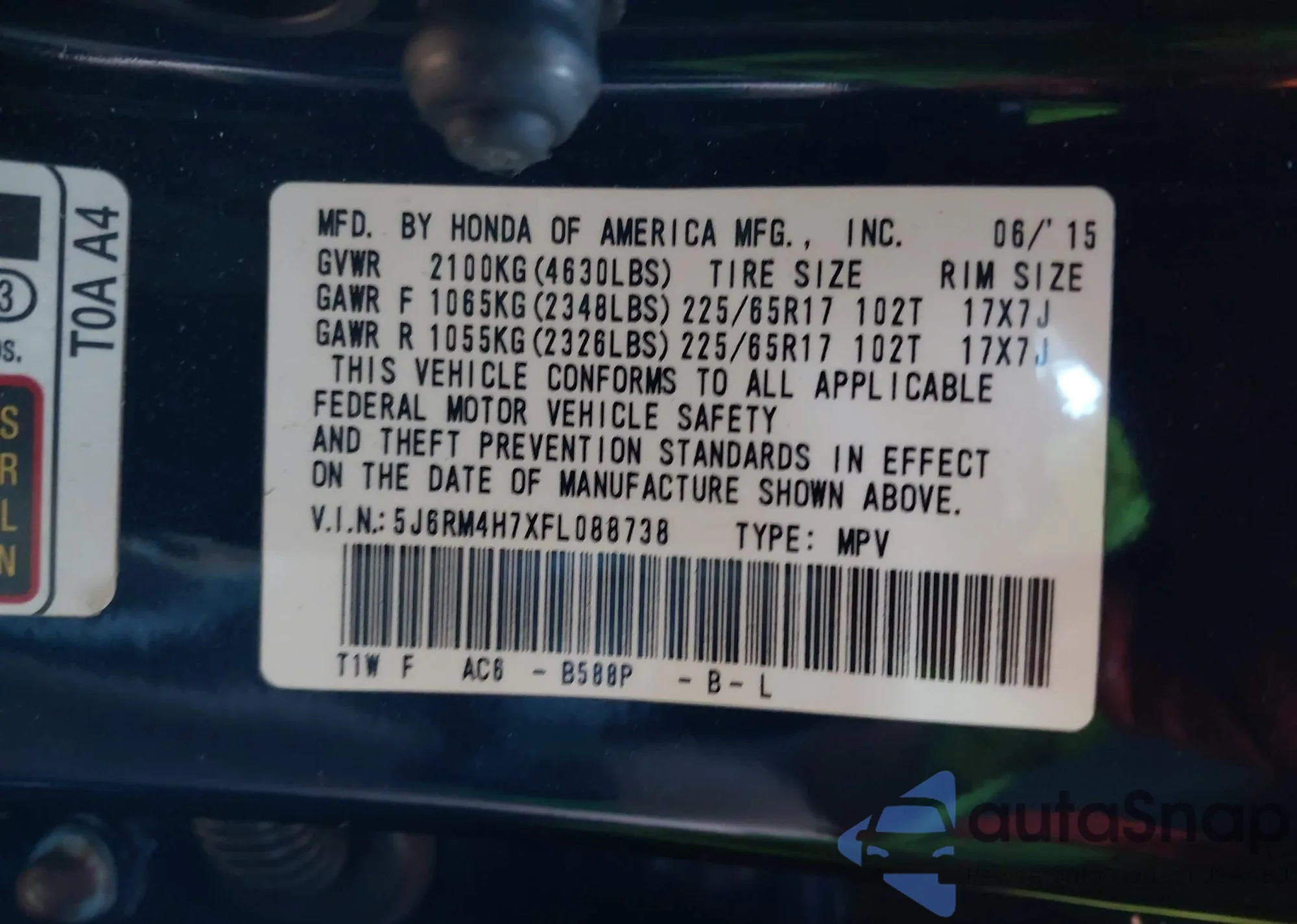 VIN: 5J6RM4H7XFL088738