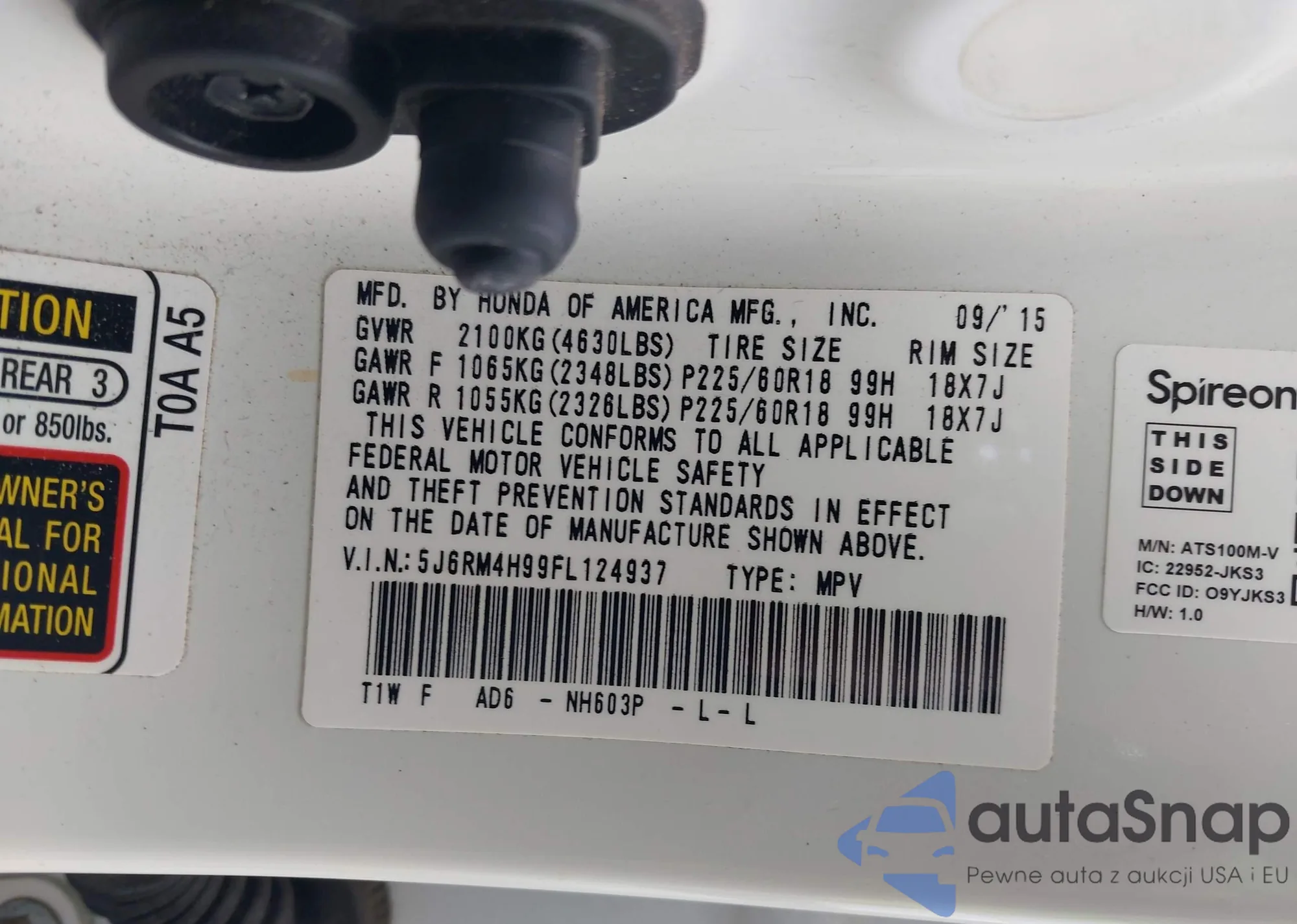 Samochód Honda CR-V 2015 (VIN 5J6RM4H99FL124937) nie był wcześniej licytowany. Dokumenty są czyste, przebieg odpowiada lub jest niższy niż średnia rynku. Sprzedaje go firma ubezpieczeniowa – polecamy zakup. Dostawa do portu zajmie ok. 6–8 tygodni.