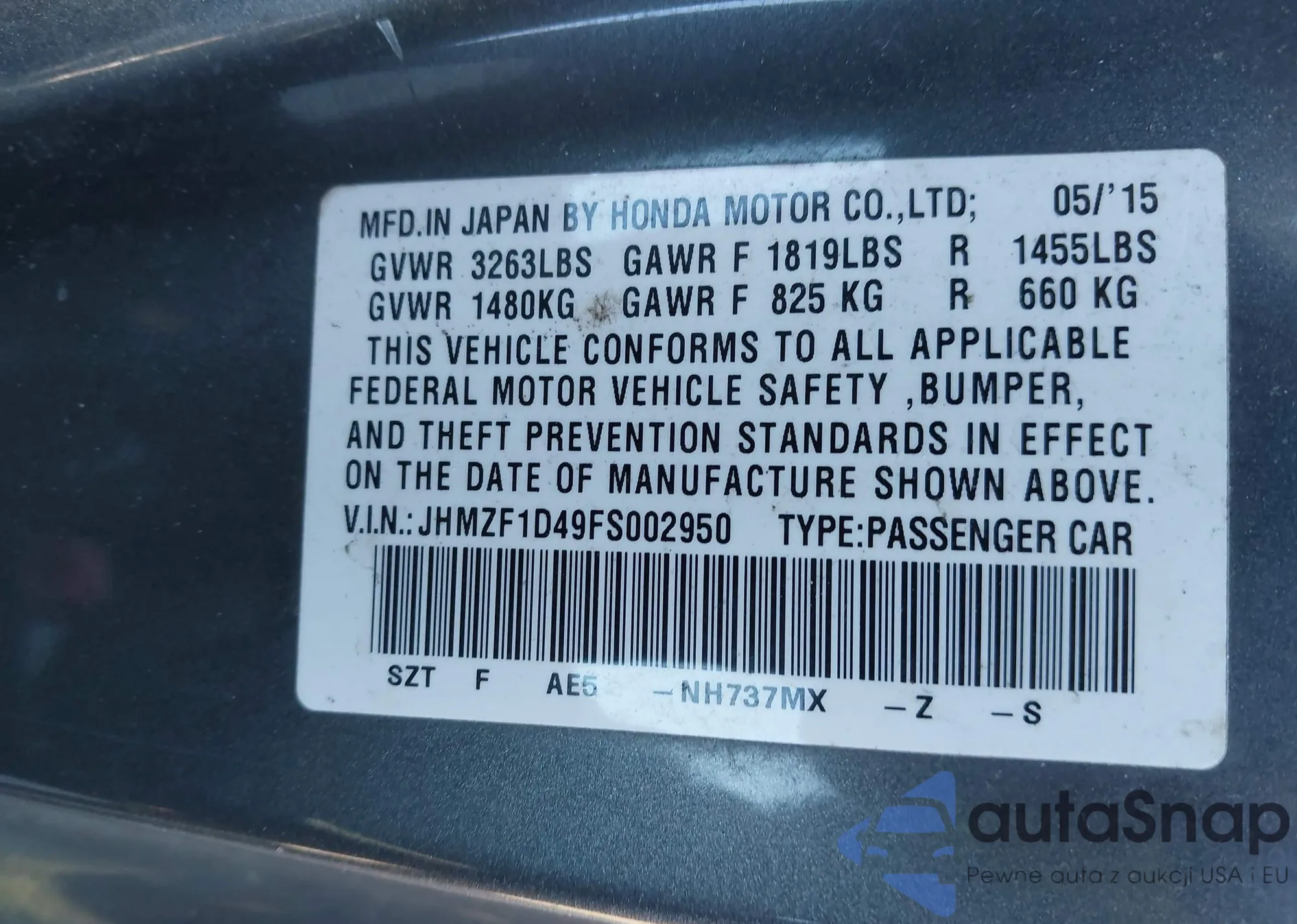 VIN: JHMZF1D49FS002950