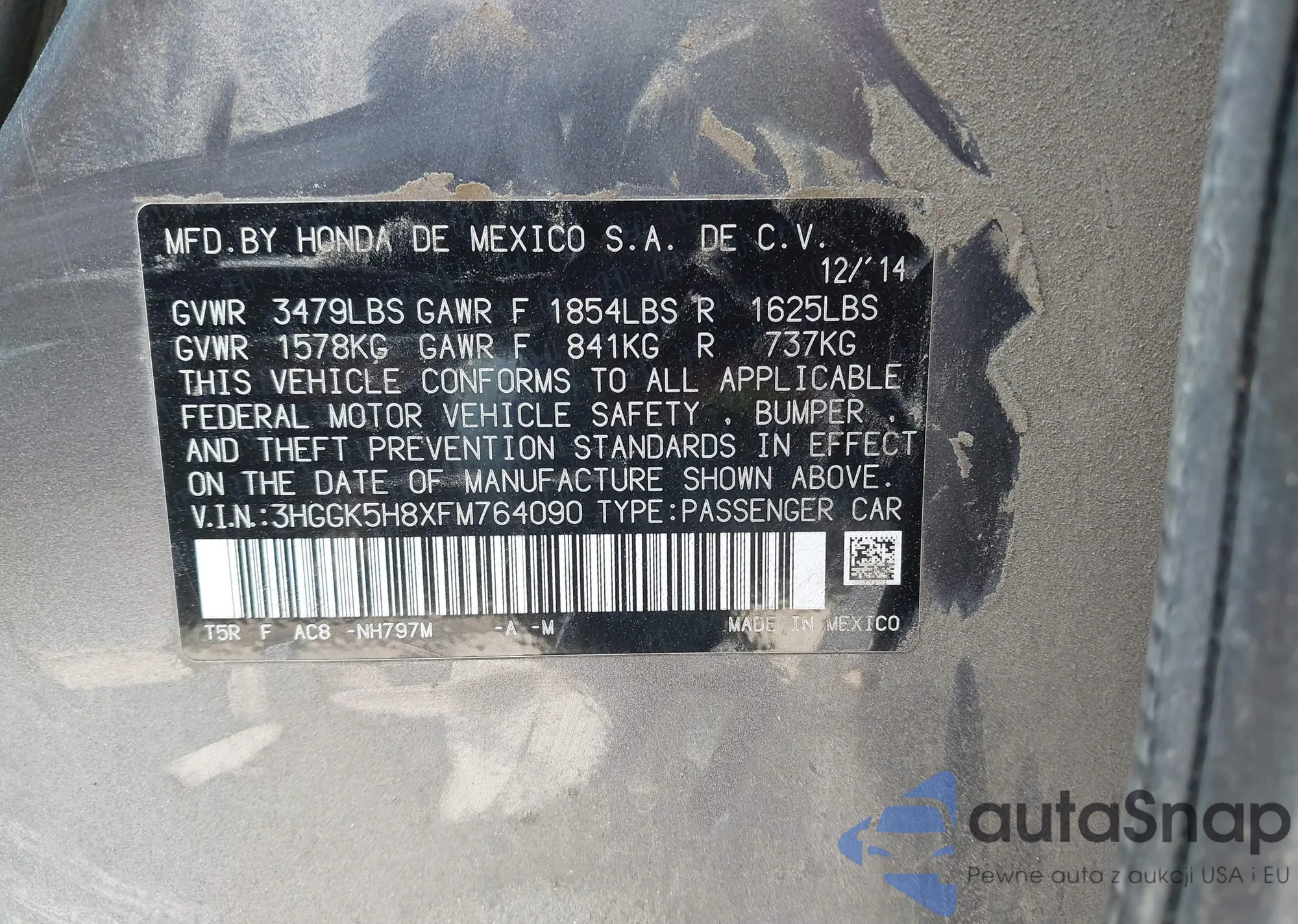 VIN: 3HGGK5H8XFM764090