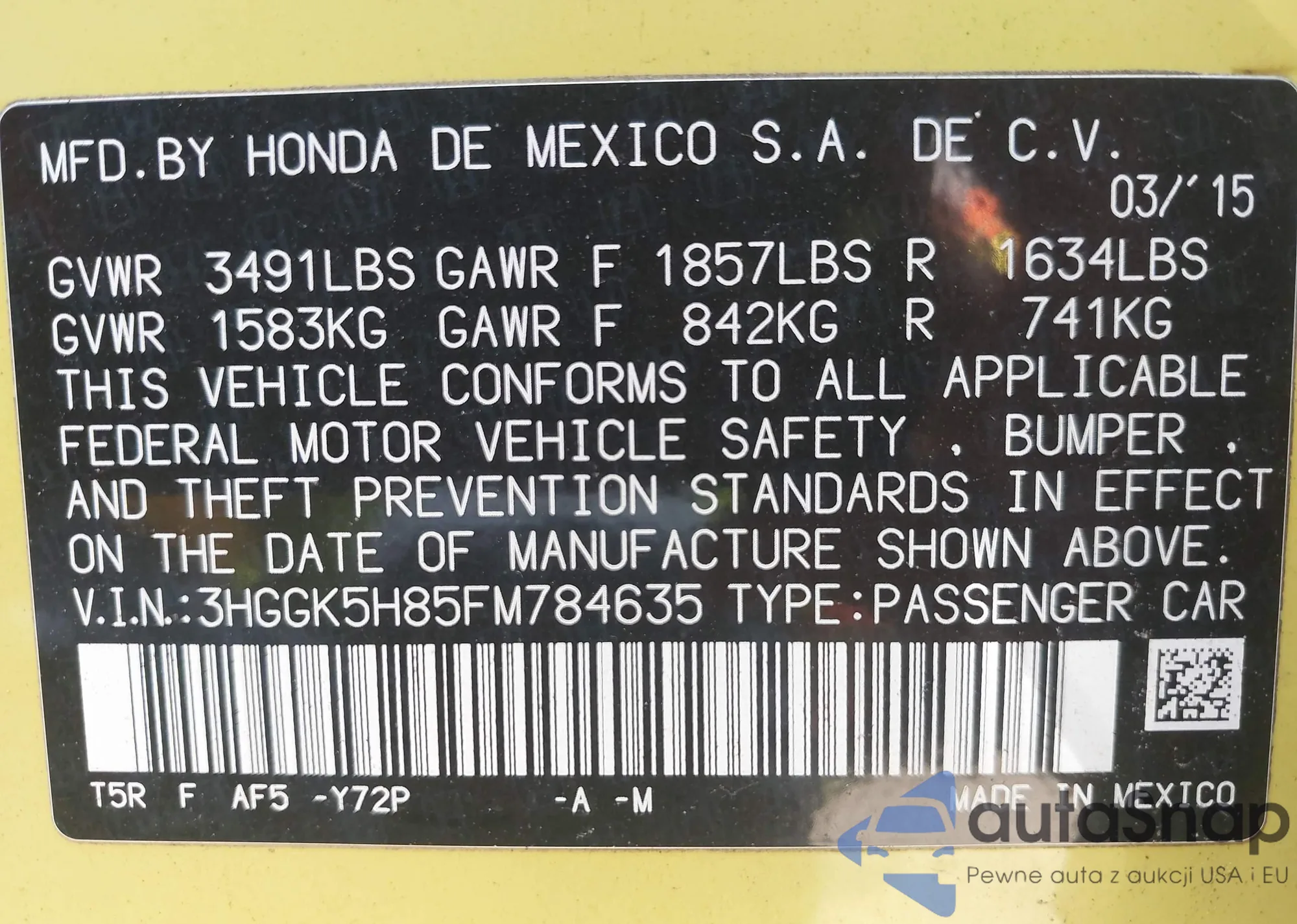 VIN: 3HGGK5H85FM784635